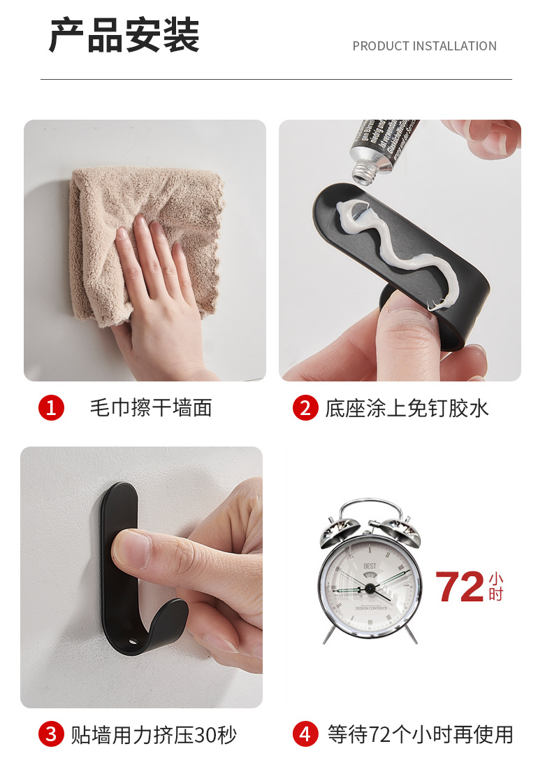 (1)无痕贴安装。安装请注意,上墙后,像手机贴膜一样,把贴片里的空气挤压出来就可以用了。
