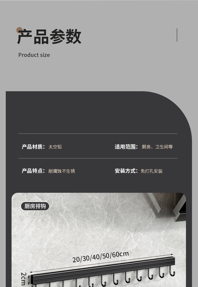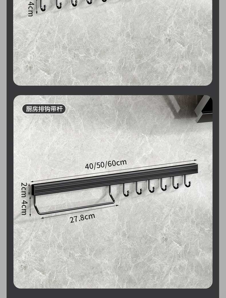 颜色 20CM活动4钩(免打孔) 30CM活动6钩(免打孔) 40CM活动8钩(免打孔) 50CM活动10钩(免打孔) 60CM活动12钩(免打孔) 608排钩带杆_黑色40CM(免打孔) 608排钩带杆_黑色50CM(免打孔) 608排钩带杆_黑色60CM(免打孔)