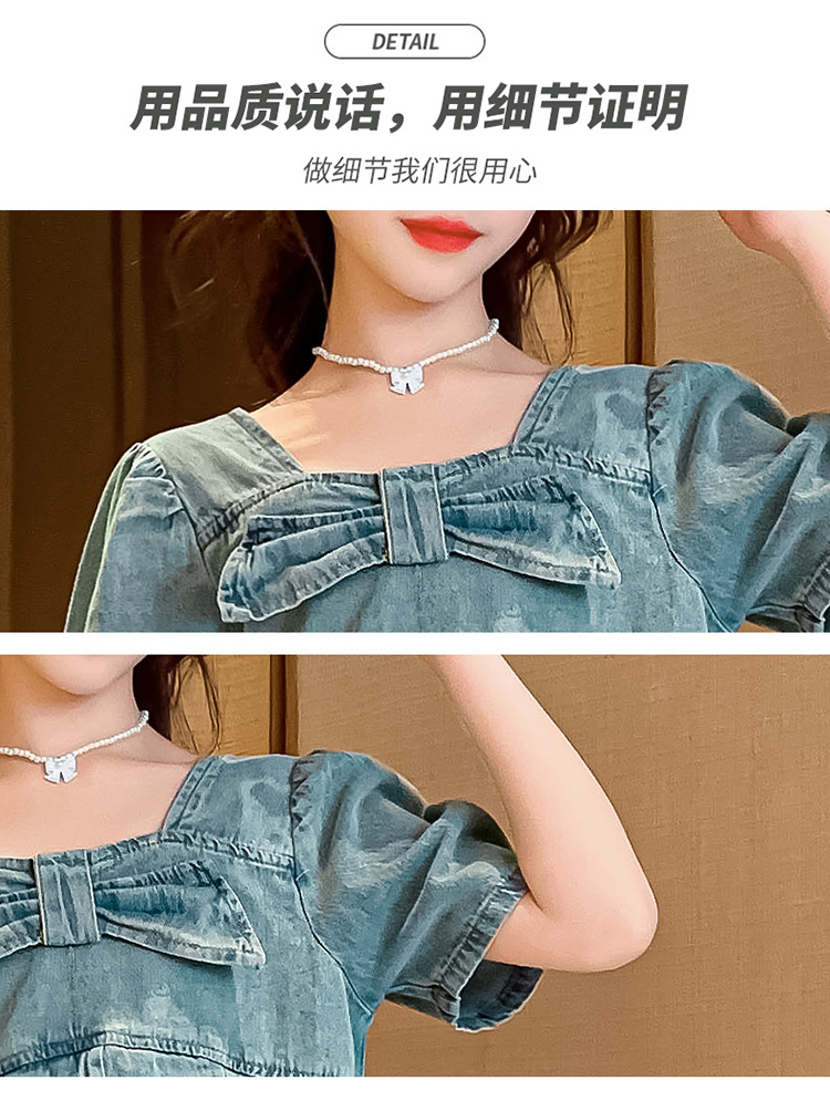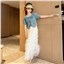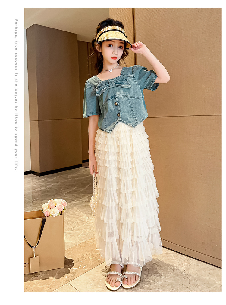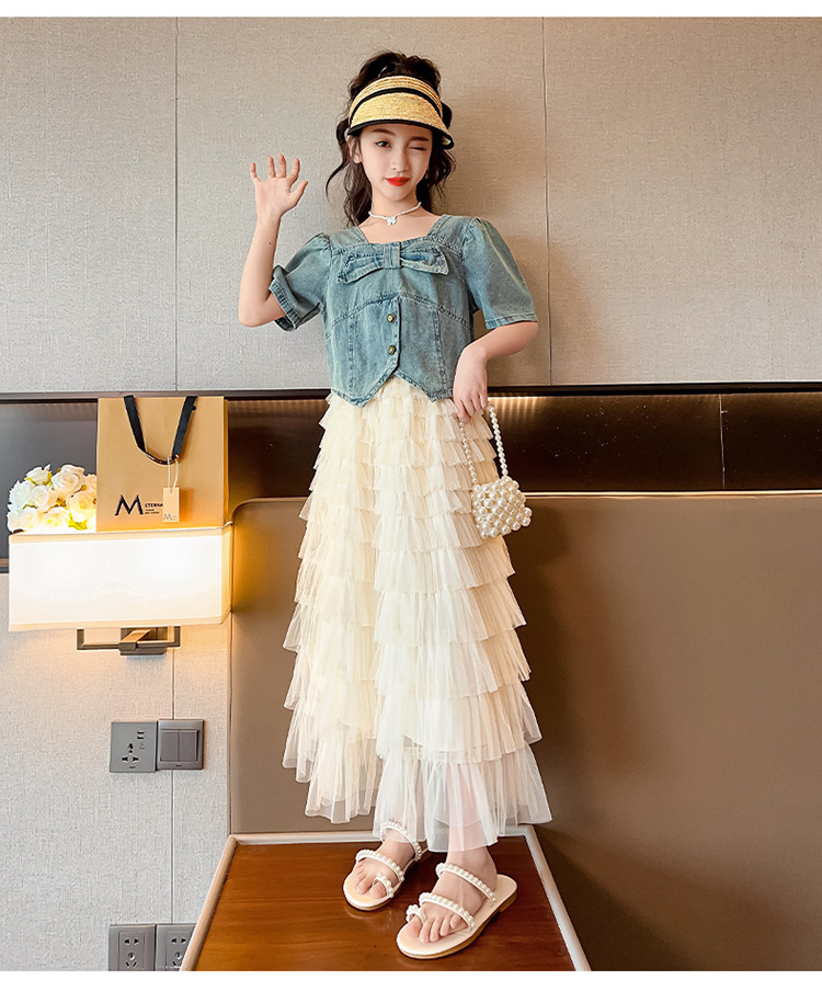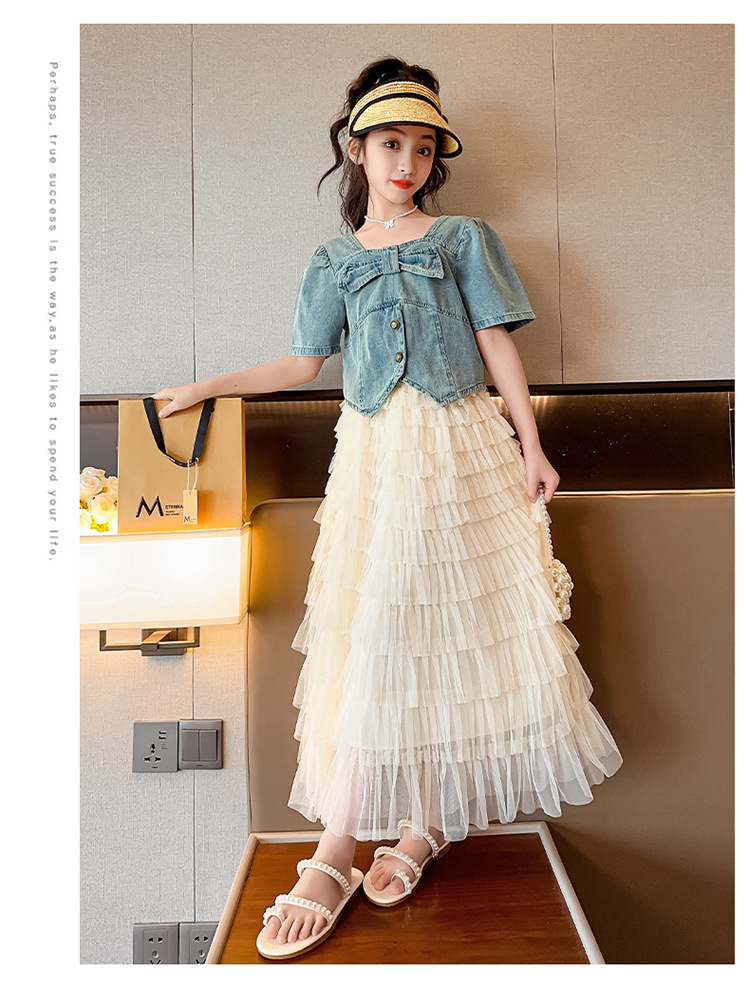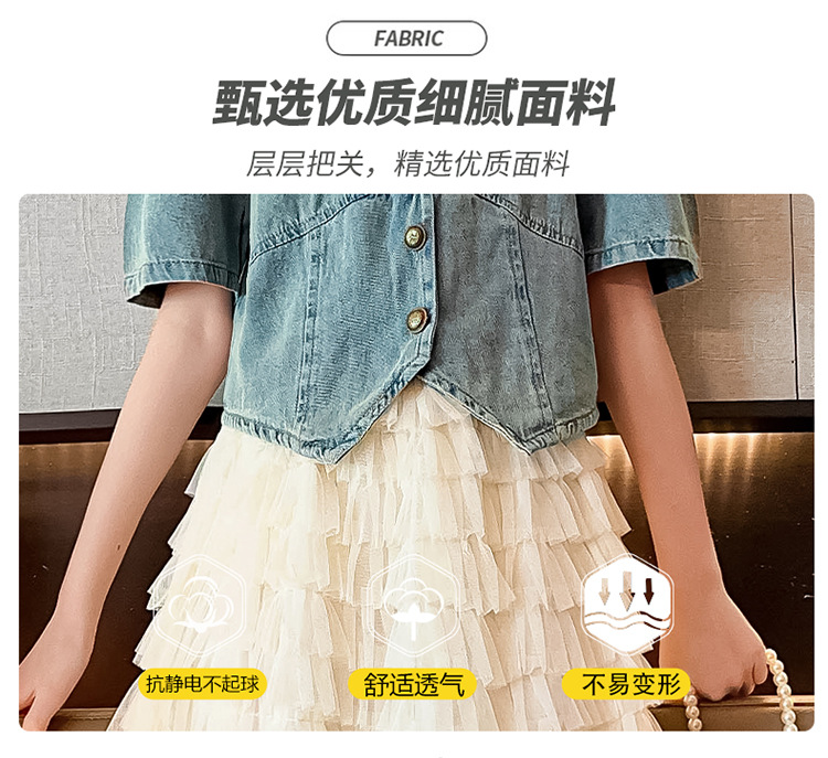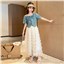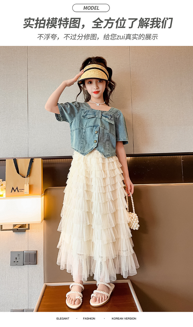 颜色 两件套 牛仔上衣 蛋糕裙