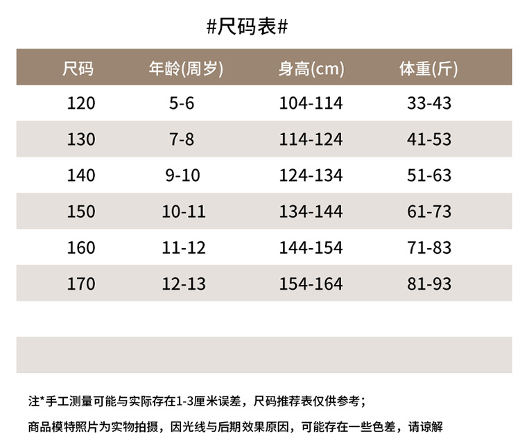 尺码 120cm 130cm 140cm 150cm 160cm 170CM