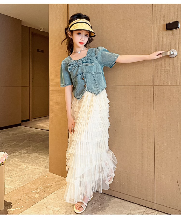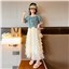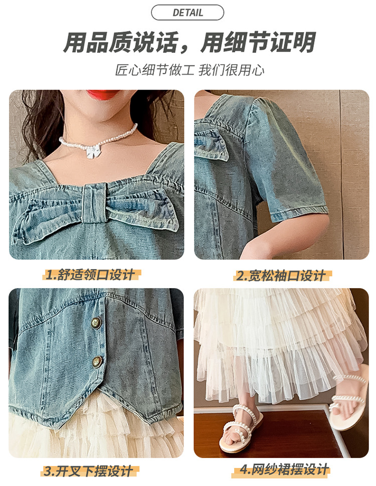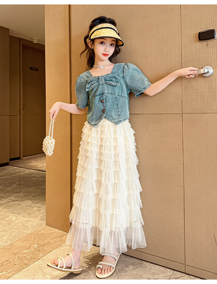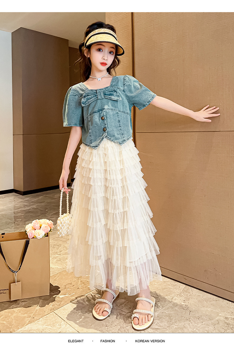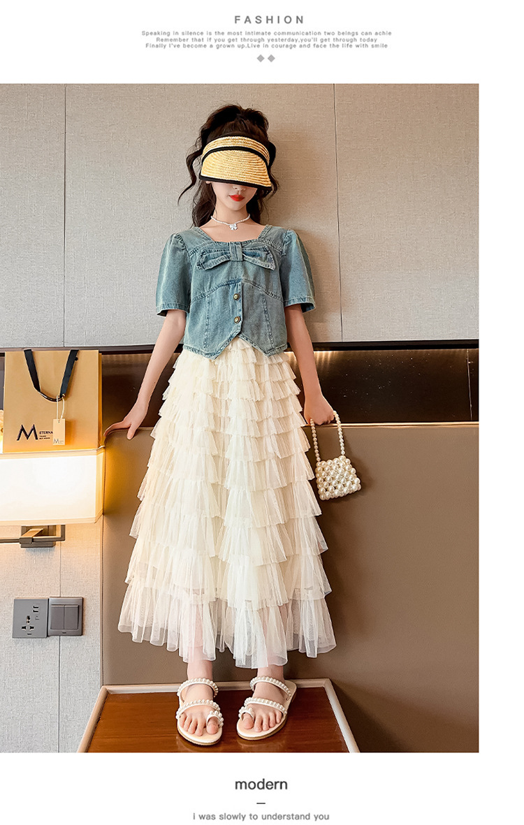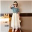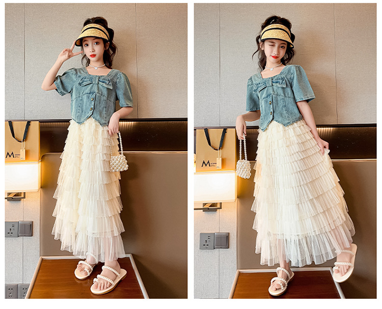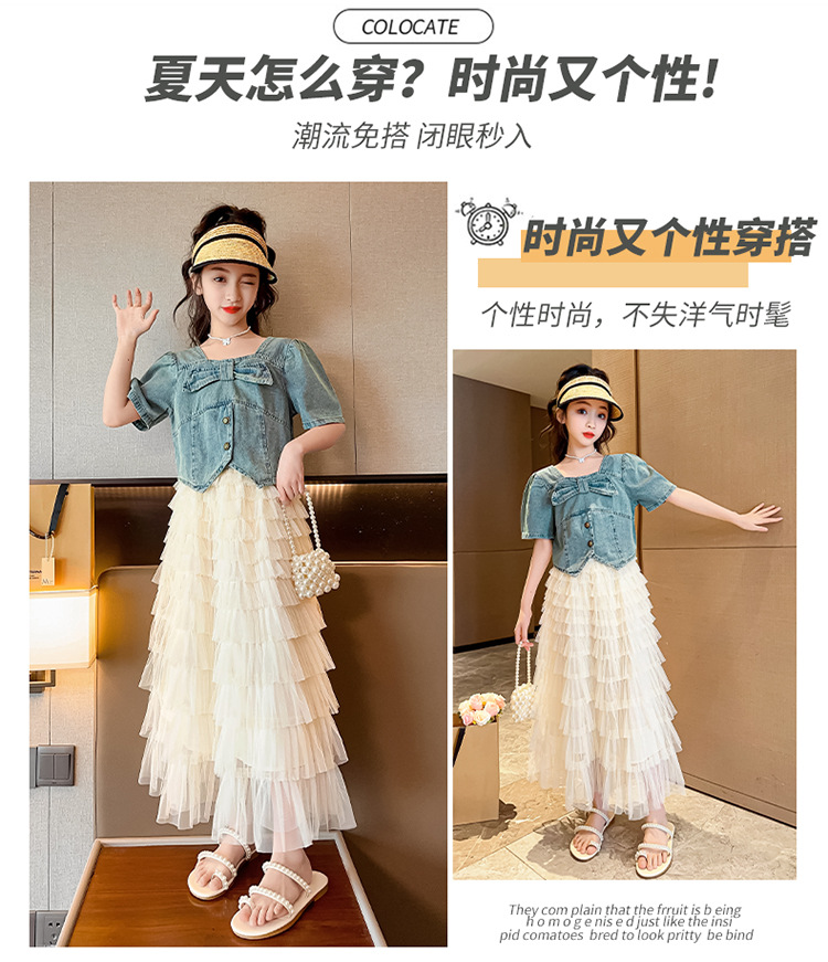 颜色 两件套 牛仔上衣 蛋糕裙