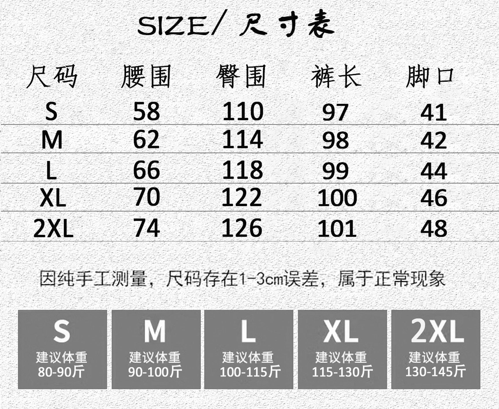 尺码 L M S XL XXL
