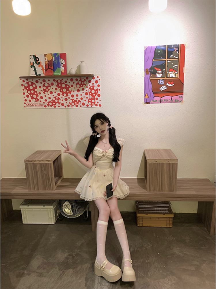 颜色 绣花连衣裙*2516