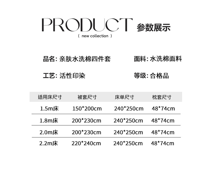 尺码 1.8M床单款四件套 2.0M床单款四件套 2.2M床单款四件套
