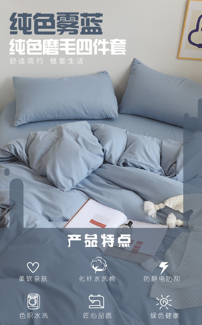 货号:化纤水洗棉高克重磨毛四件套