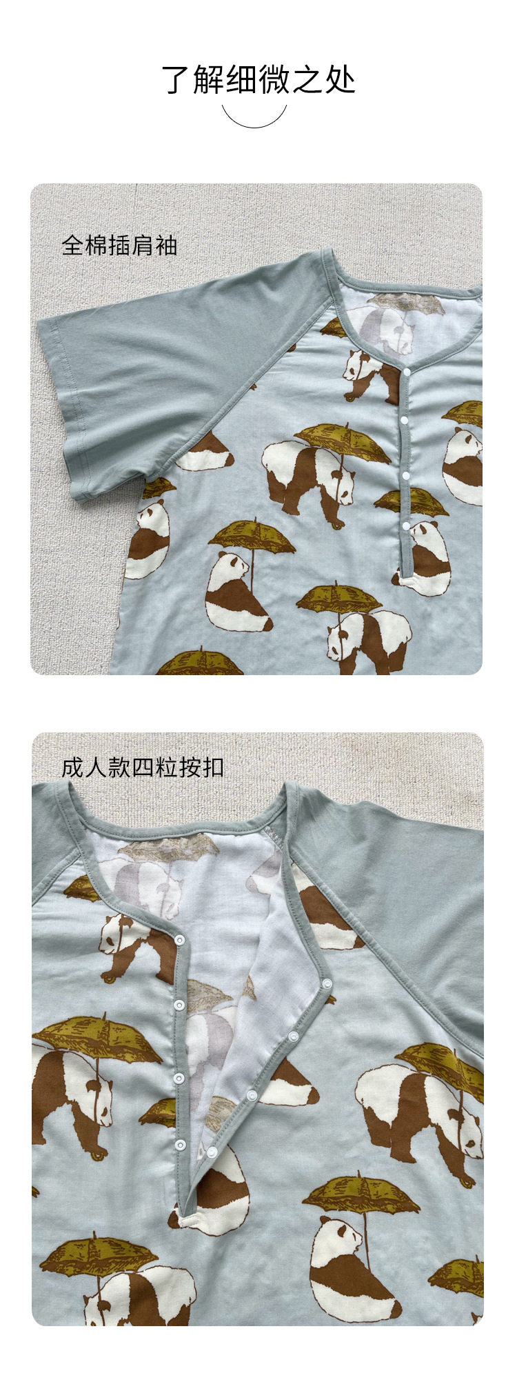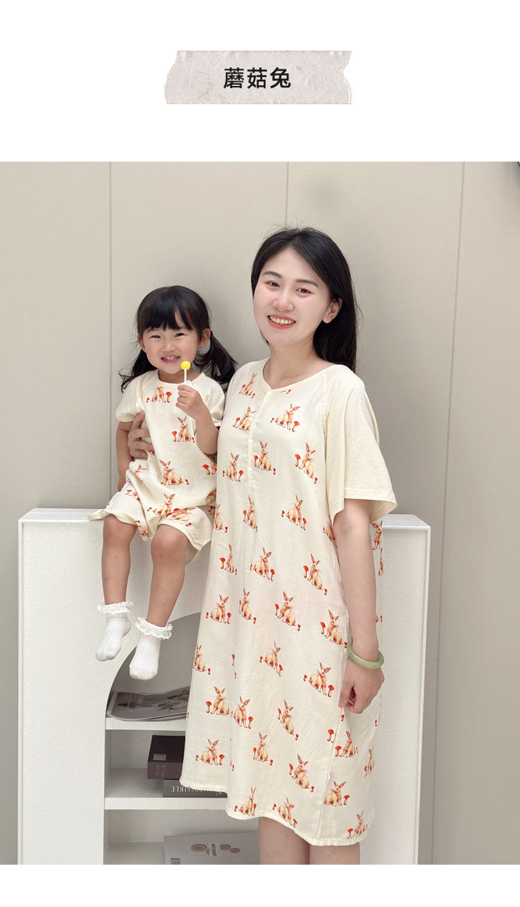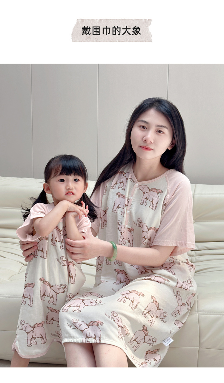 颜色 打伞熊猫_双层纱短袖睡裙 戴围巾的大象_双层纱短袖睡裙 羽翼_双层纱短袖睡裙 蘑菇兔_双层纱短袖睡裙