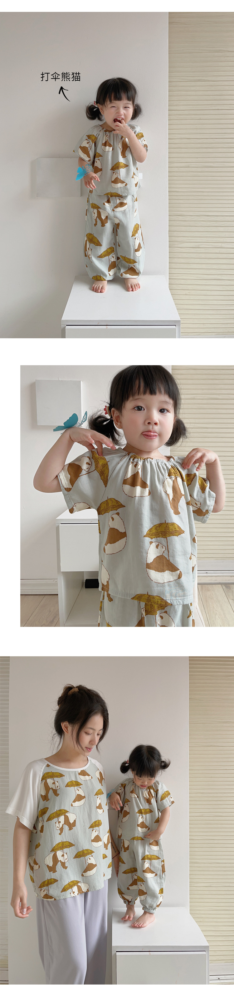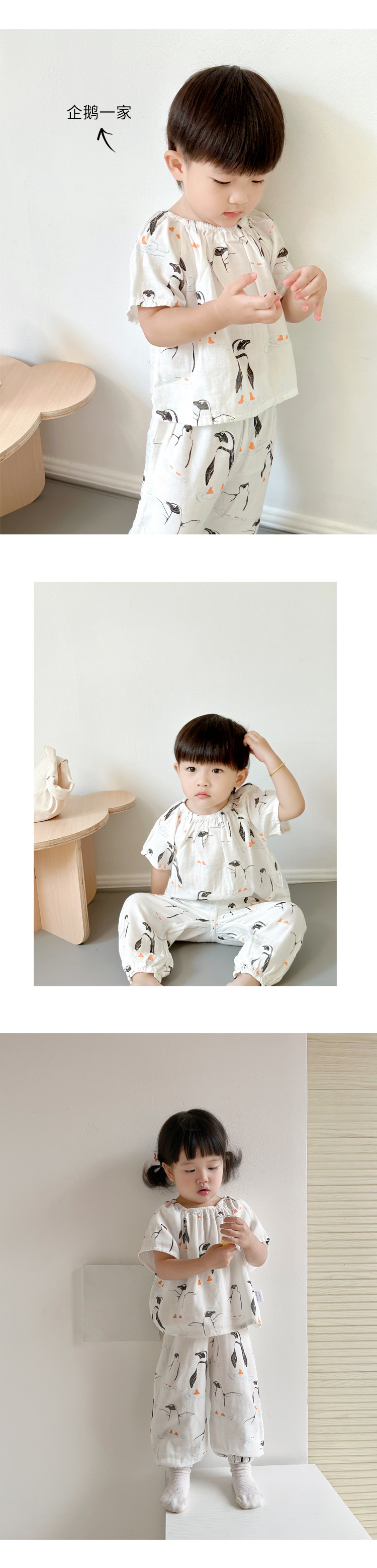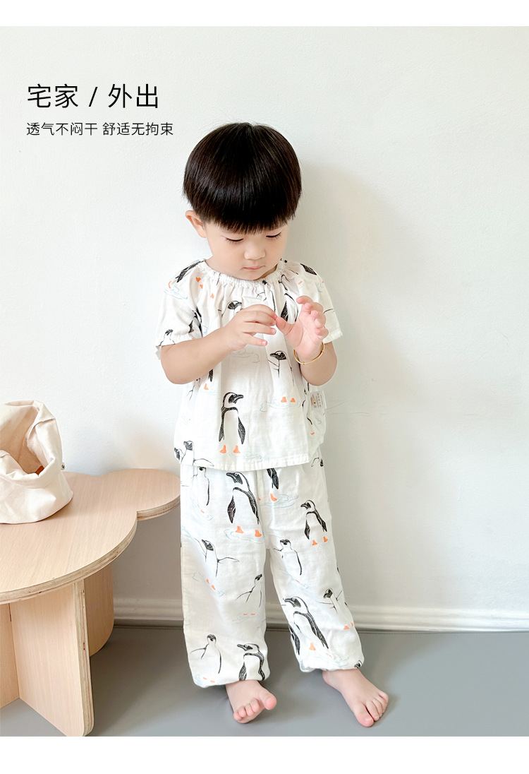 颜色 家燕_双层纱短袖长裤套装 企鹅一家_双层纱短袖长裤套装 打伞熊猫_双层纱短袖长裤套装 恐龙小镇_双层纱短袖长裤套装 蘑菇兔_双层纱短袖长裤套装