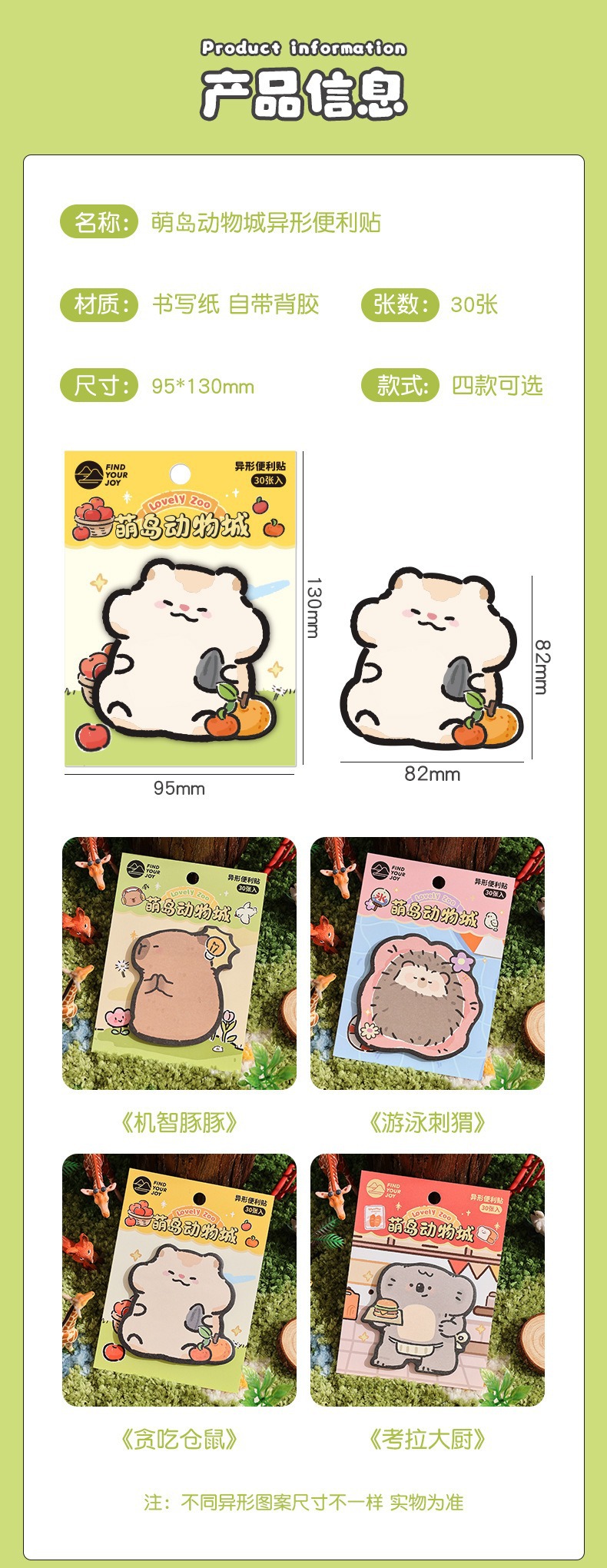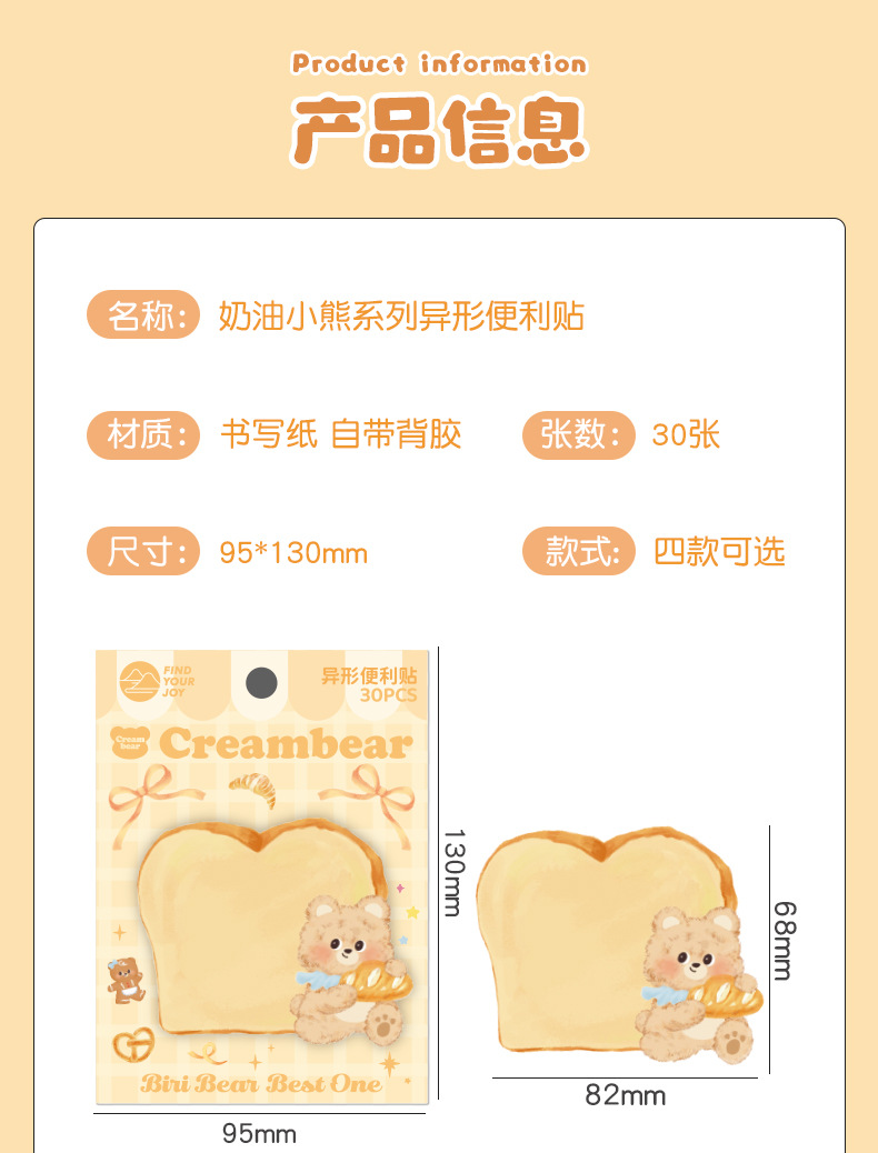 颜色 萌岛动物城异形便利贴 奶油小熊异形便利贴