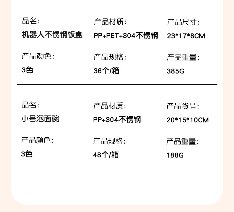 货号:机器人不锈钢饭盒 小号泡面碗