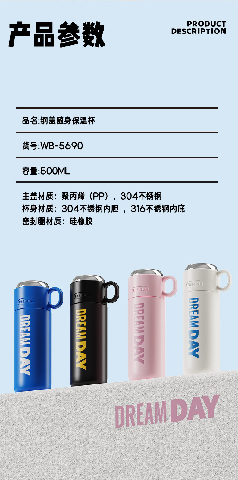 颜色 钢盖随身保温杯