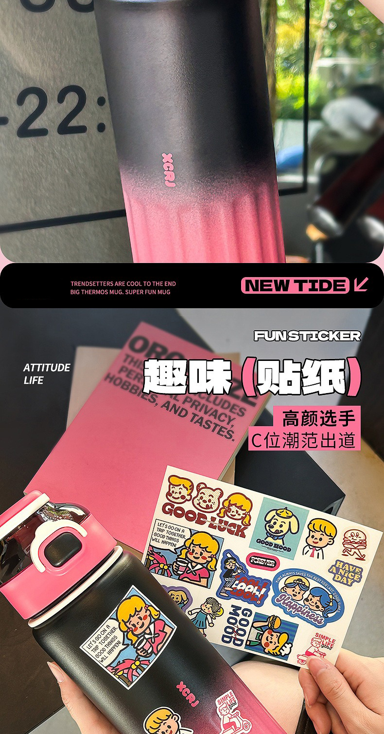 颜色 敲有趣保温杯【送贴纸】