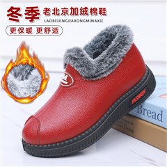 冬季女士棉鞋老北京加绒保暖PU面休闲妈妈棉鞋轻便中老年雪地鞋靴
