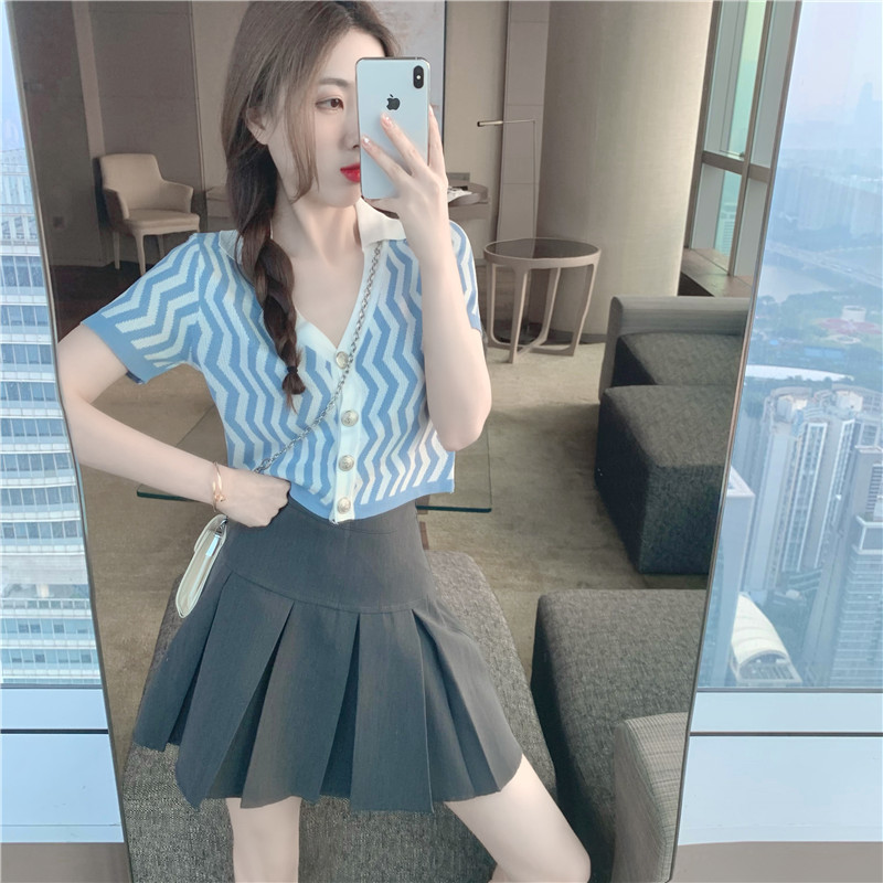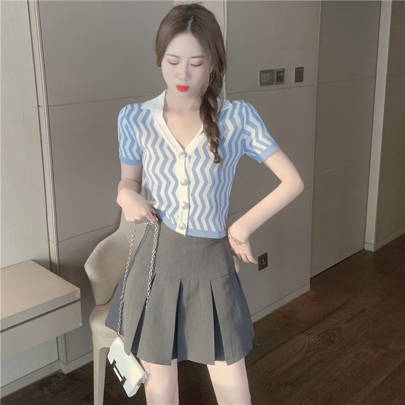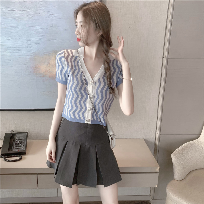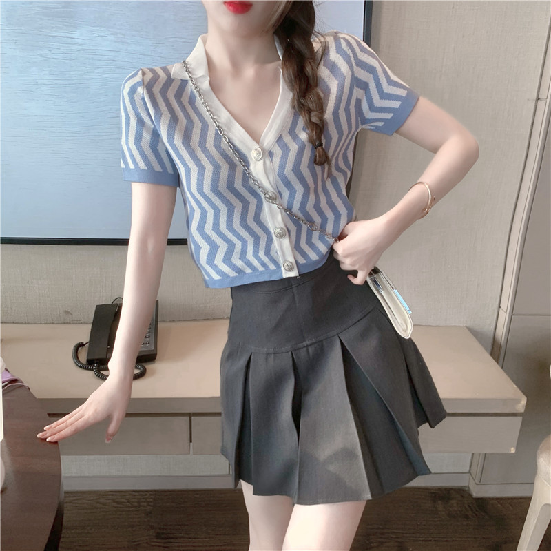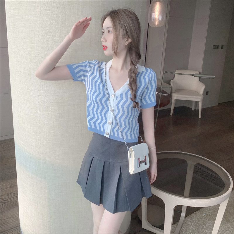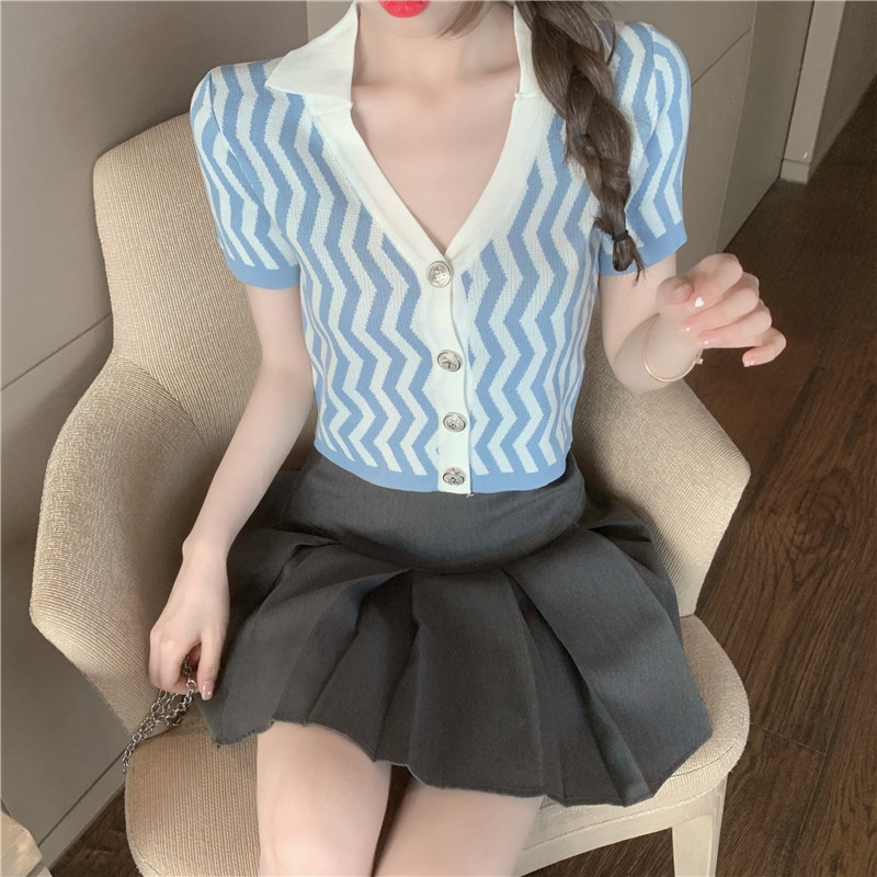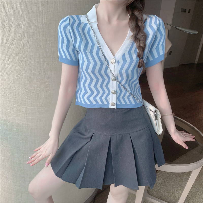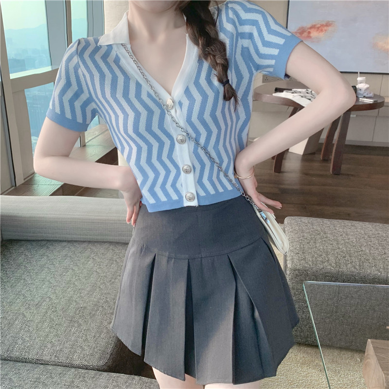 颜色 波浪纹针织衫