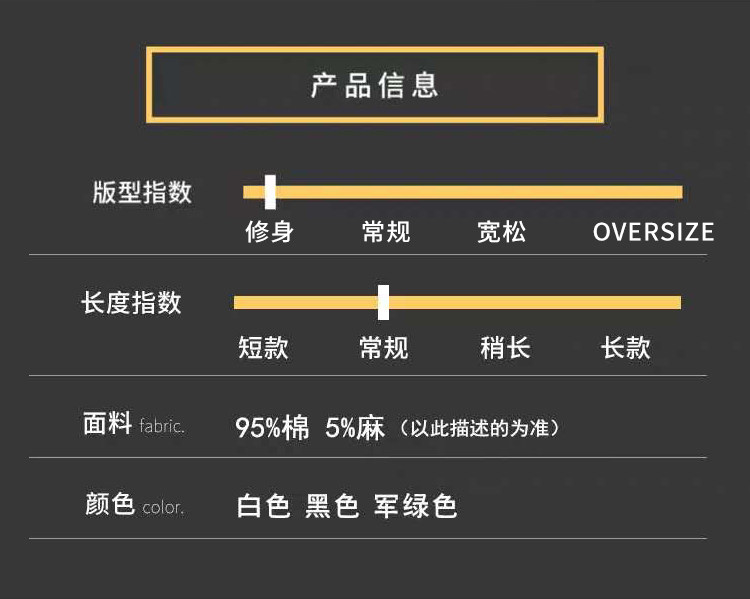 颜色 白色长袖 白色中袖 黑色长袖 黑色中袖 军绿色长袖 军绿色中袖