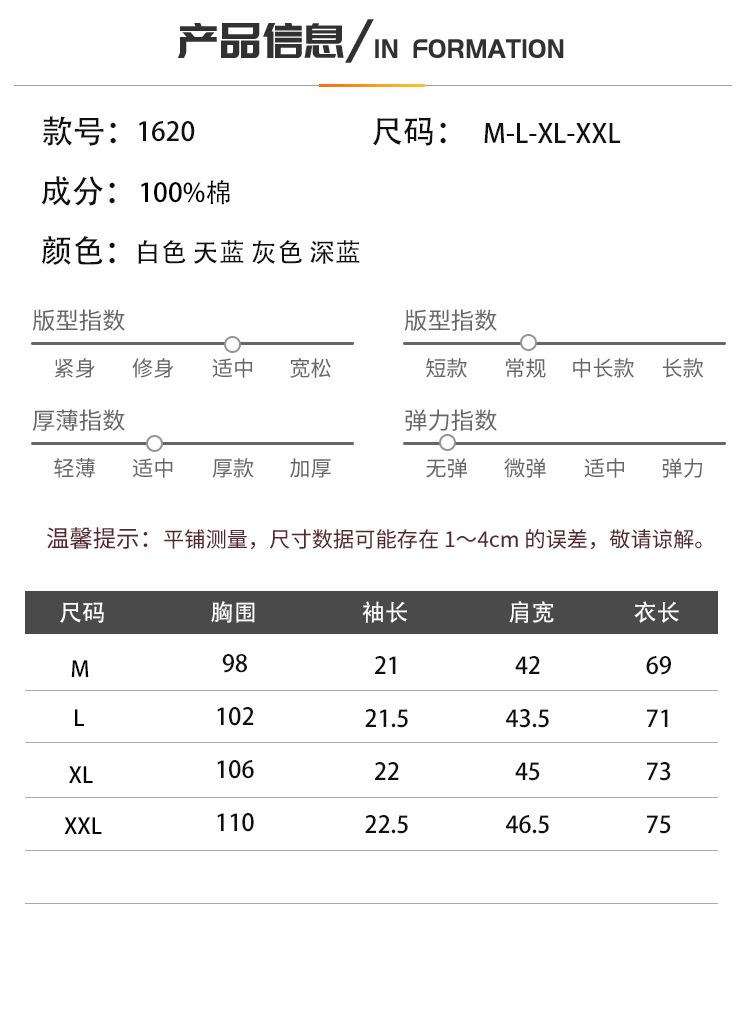 尺码 2XL(185/100A) L(175/92A) M(170/88A) XL(180/96A)