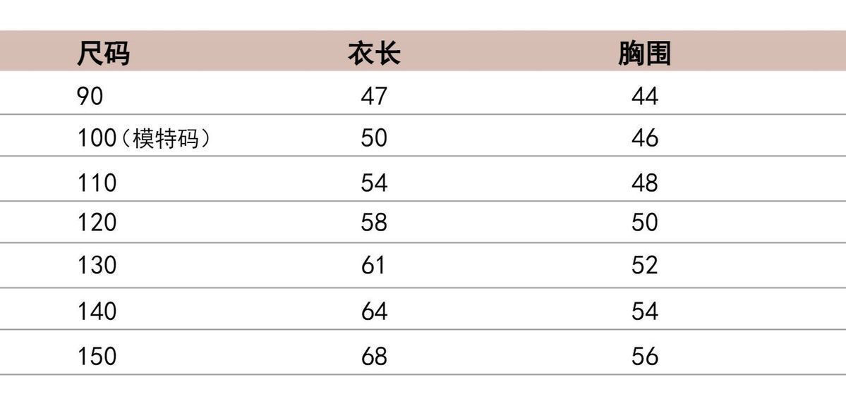 尺码 100cm 110cm 120cm 130cm 140cm 150cm 160cm