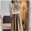 颜色 咖色半身裙 杏色衬衫 杏色衬衫+咖色半身裙套装