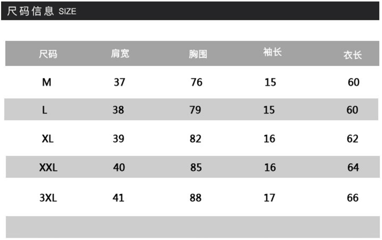 尺码 2XL 3XL L M XL