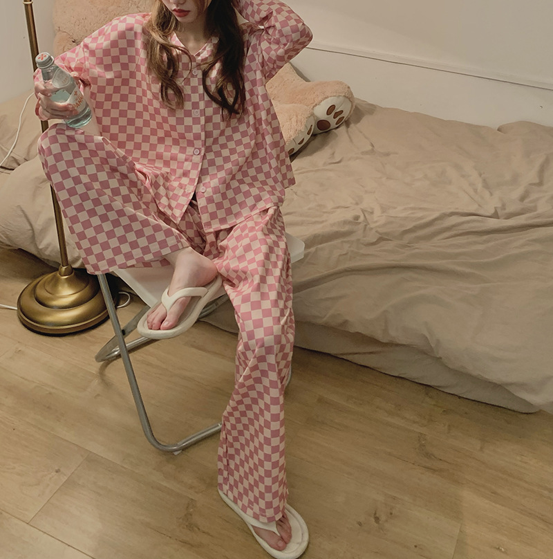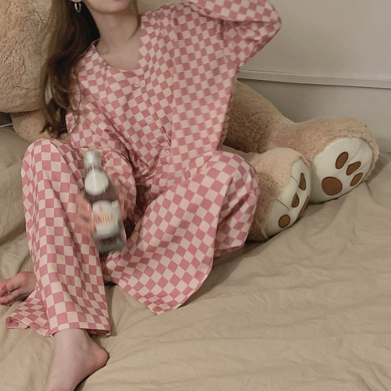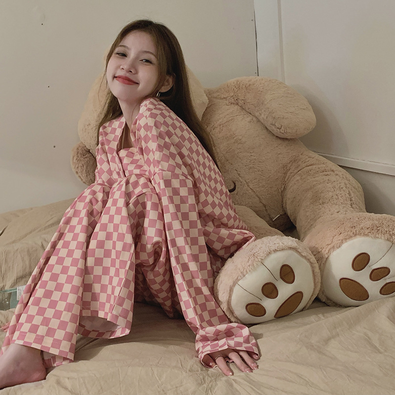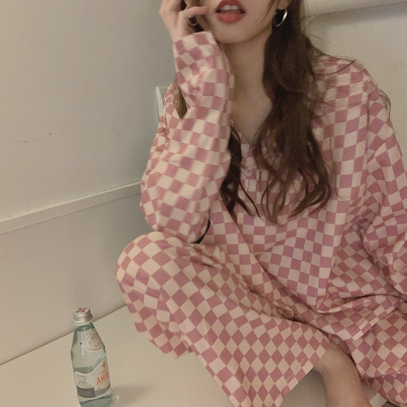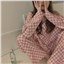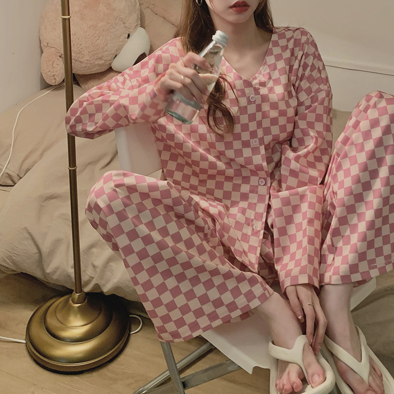 颜色 V领粉格子