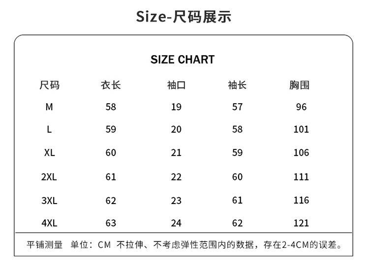 尺码 2XL 3XL 4XL L M XL