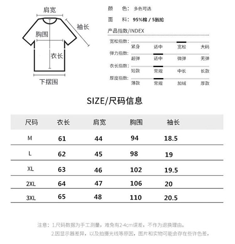 尺码 2XL 3XL L M XL