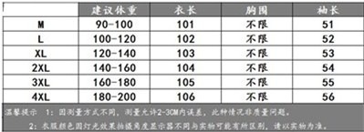 尺码 2XL 3XL 4XL L M XL