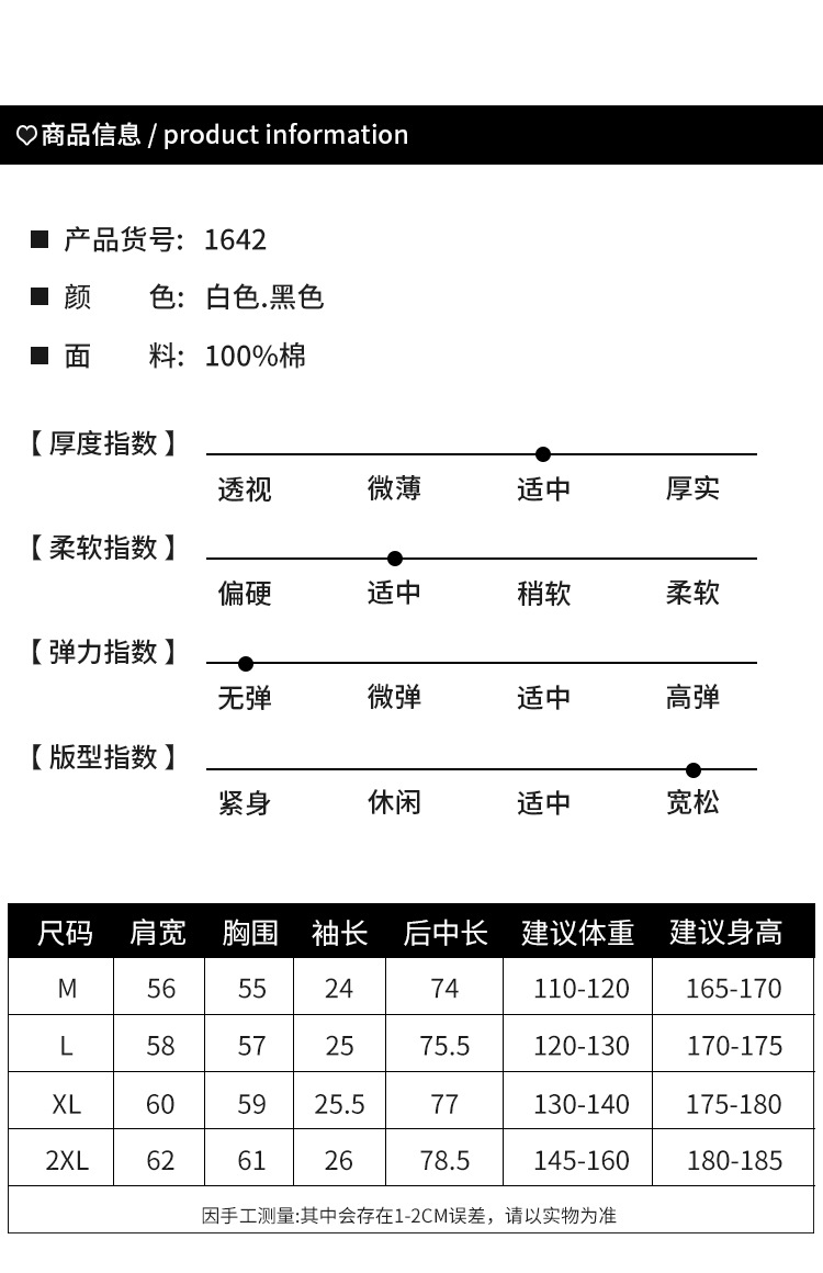 尺码 2XL(185/100A) L(175/92A) M(170/88A) XL(180/96A)