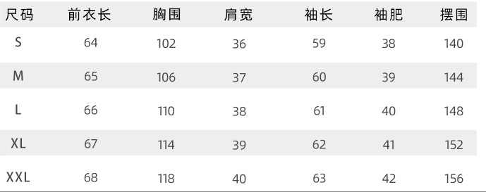 尺码 L M S XL XXL