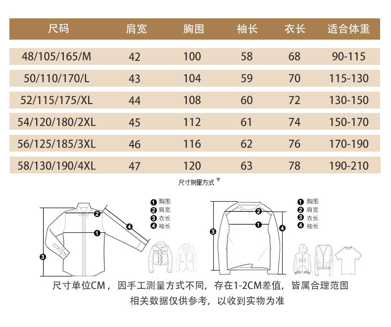 尺码 105/165/M 110/170/L 115/175/XL 120/180/2XL 125/185/3XL 130/190/4XL