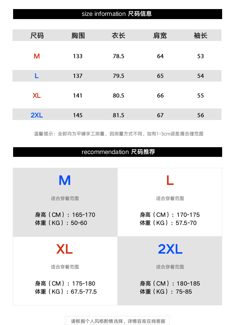 尺码 2XL L M XL