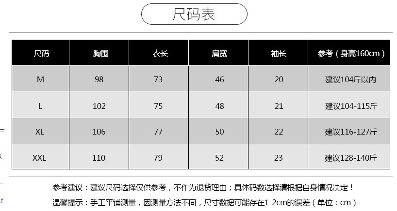 尺码 L M XL XXL