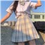 柠檬海盐(白色短袖衬衣+格裙+领结)