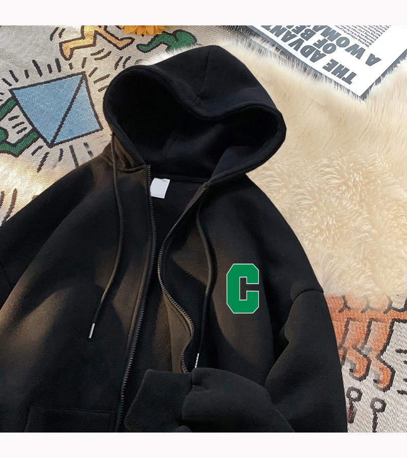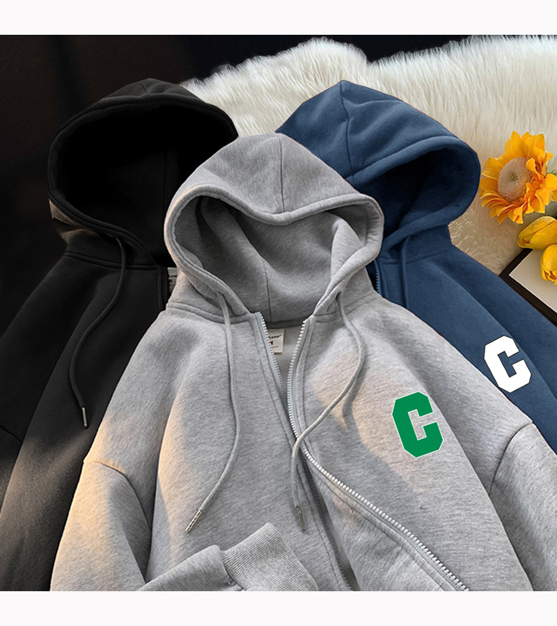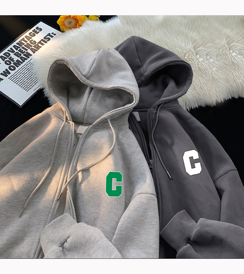 美式嘻哈长袖连帽卫衣男士秋冬季设计感加绒加厚开衫拉链上衣外套