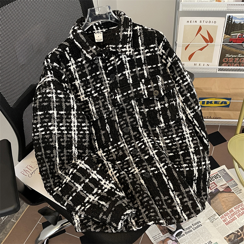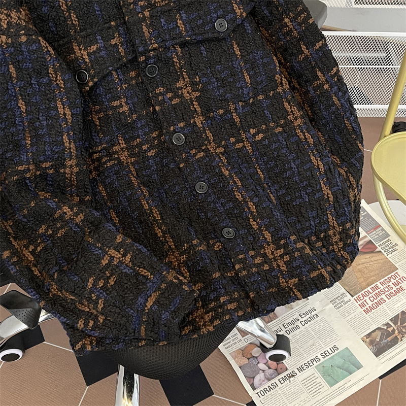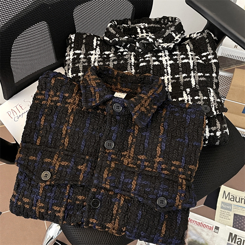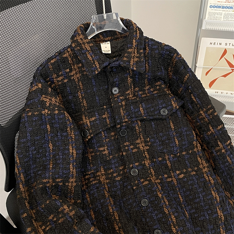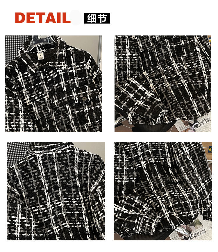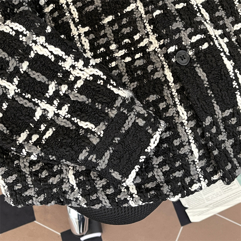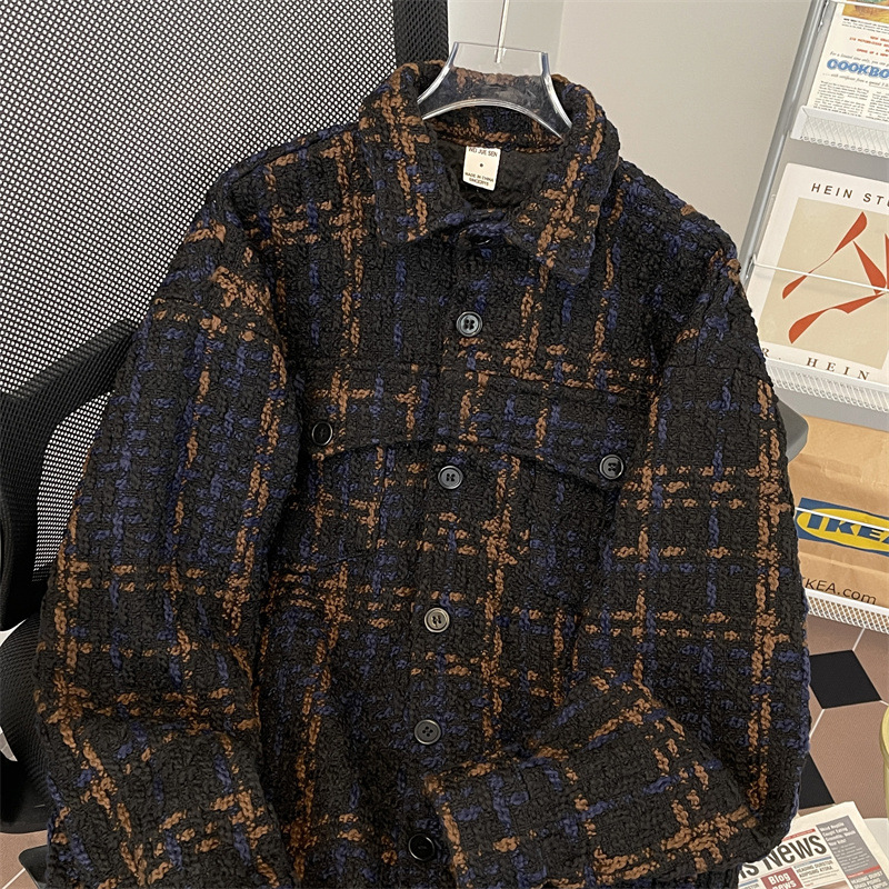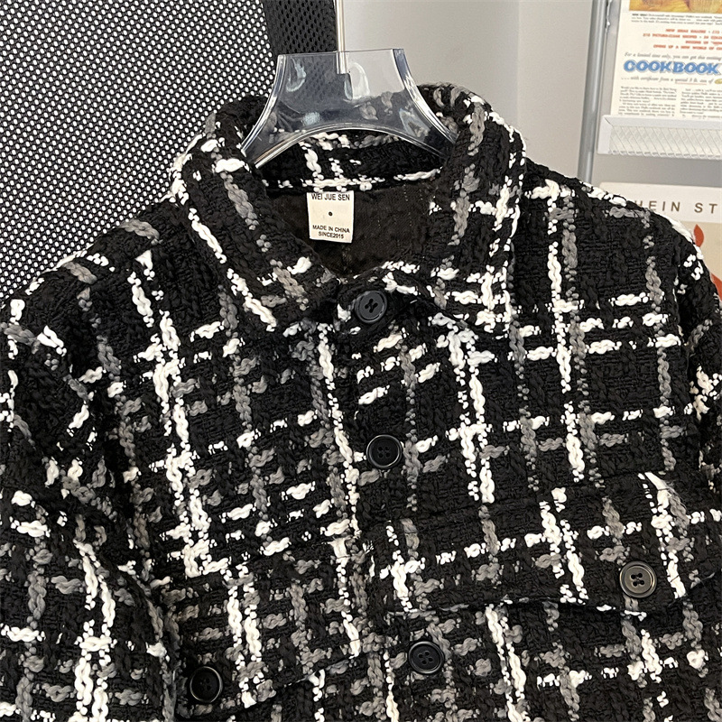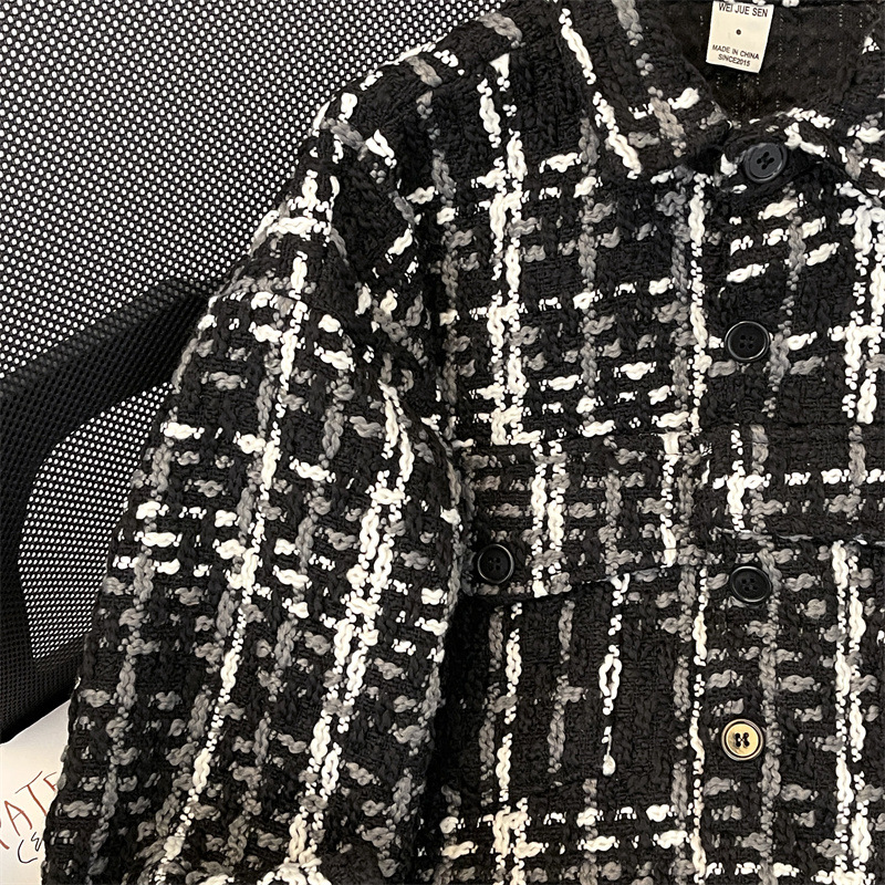 编织小香风夹克男春季2024新款韩版休闲复古高级百搭宽松潮牌外套