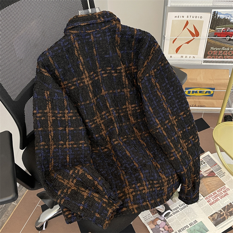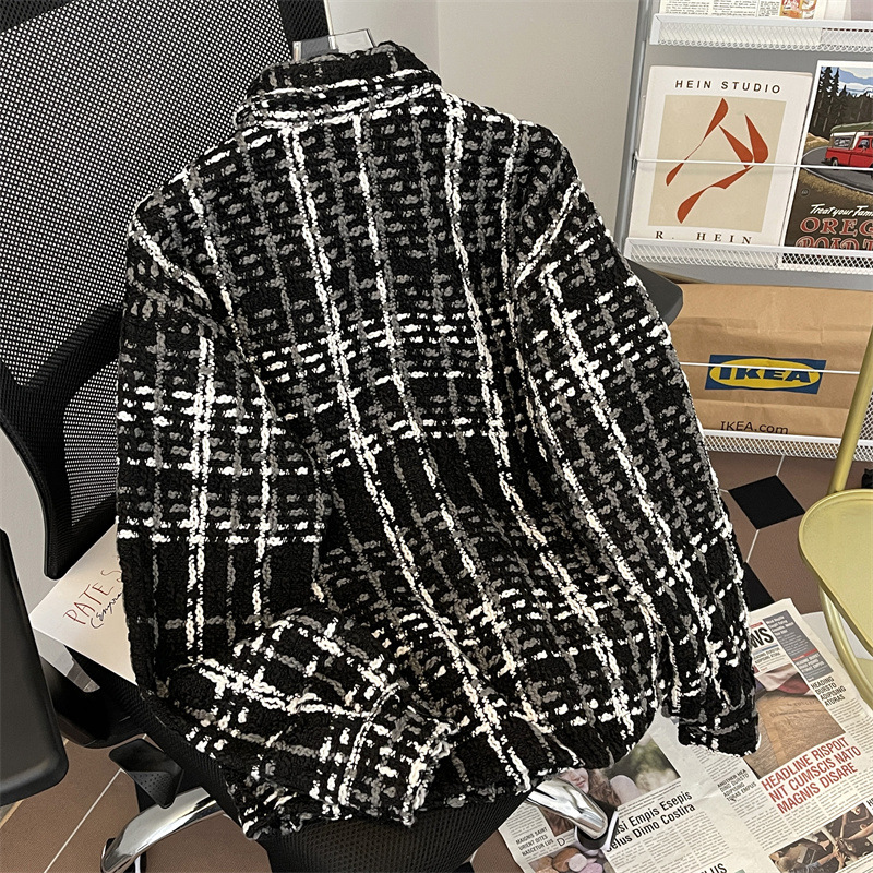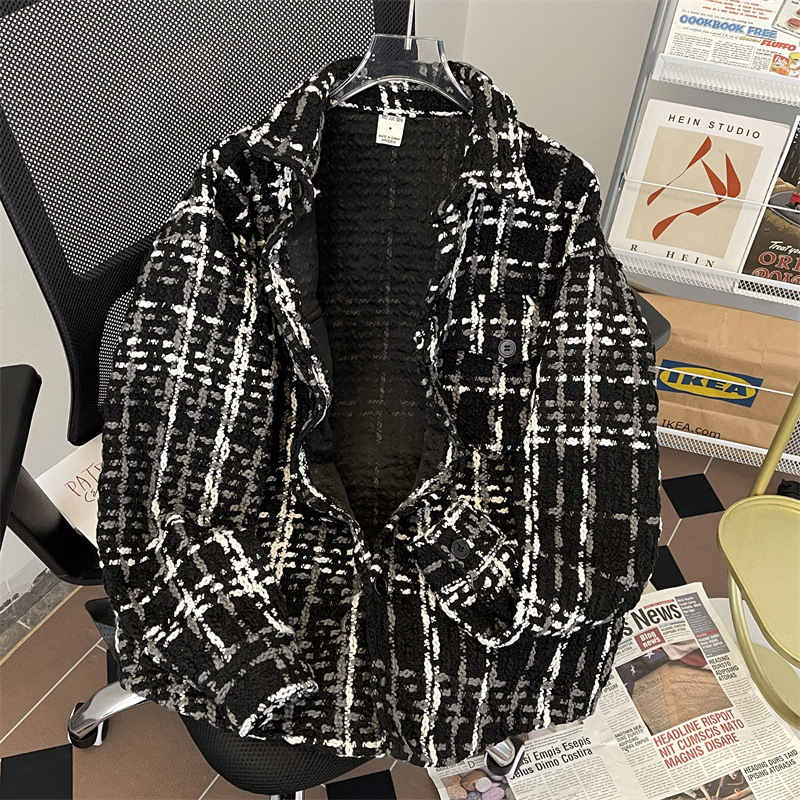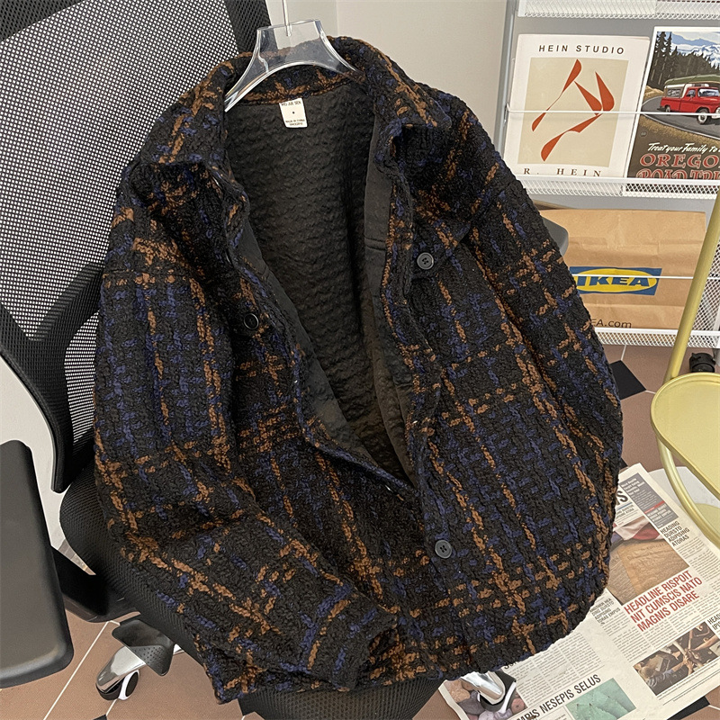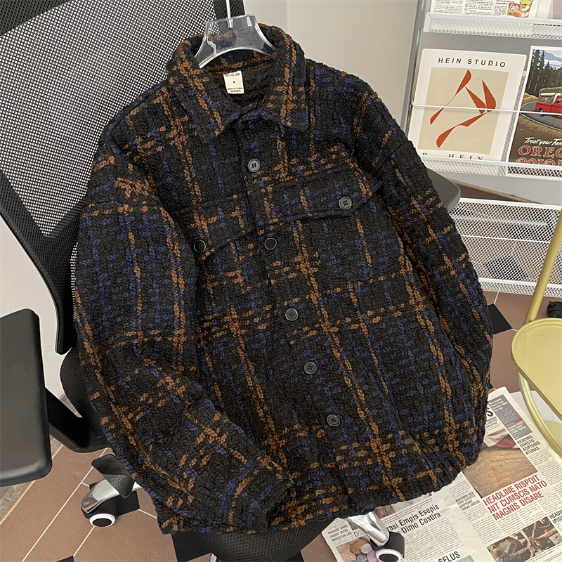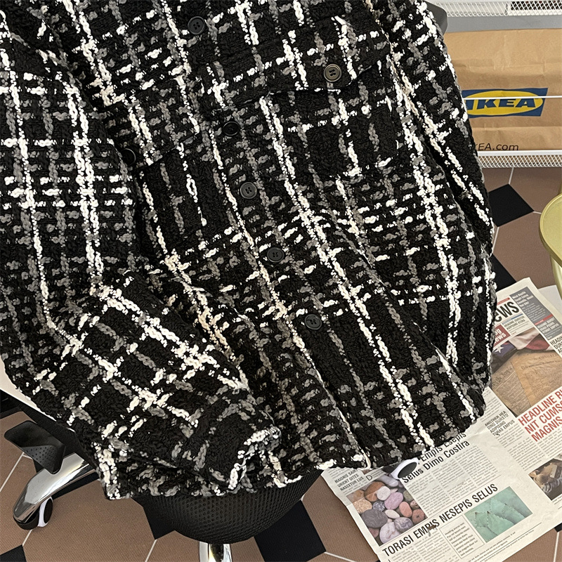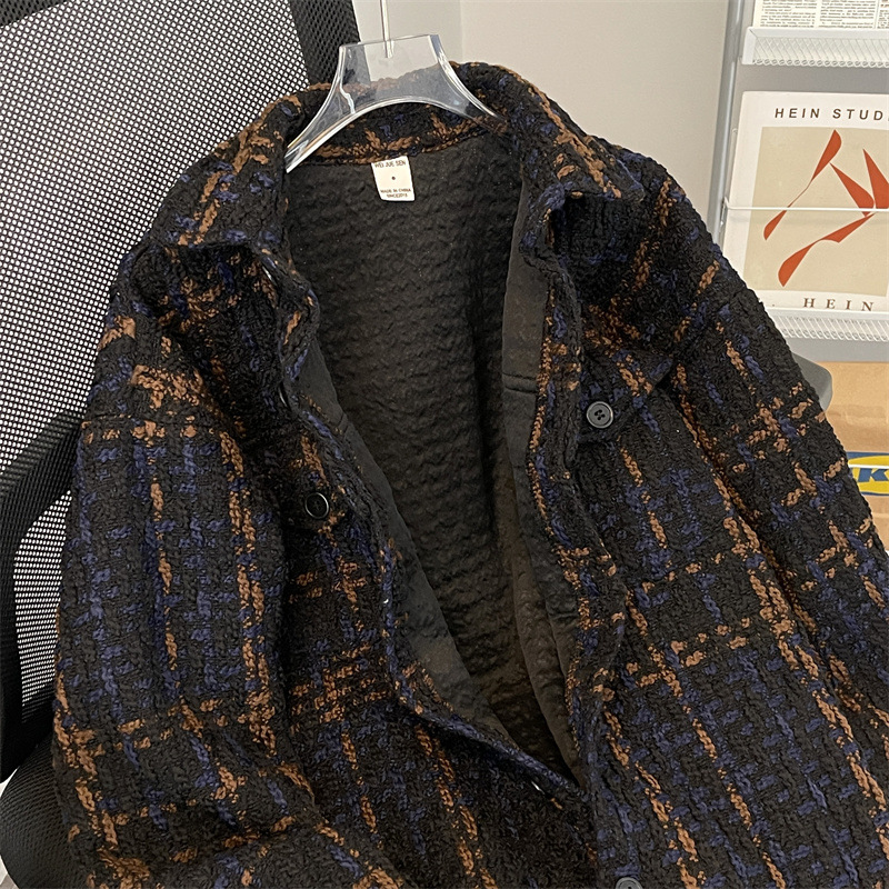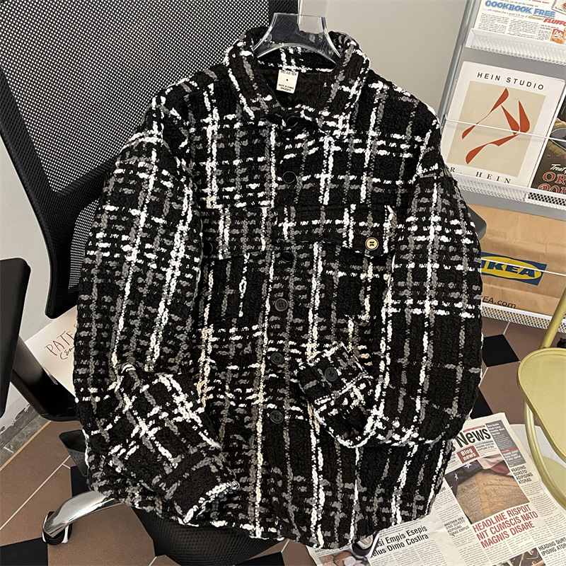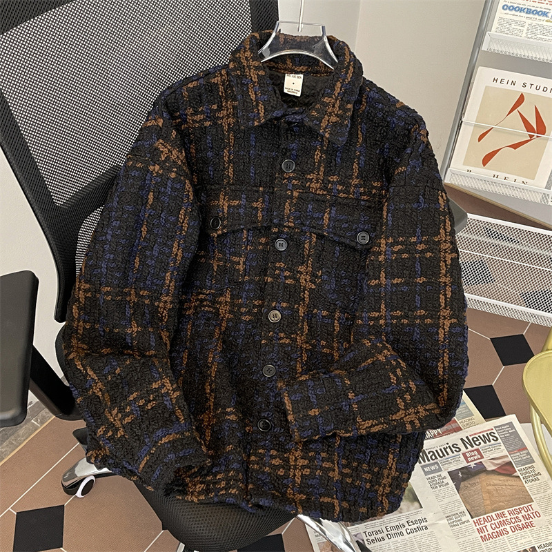 编织小香风夹克男春季2024新款韩版休闲复古高级百搭宽松潮牌外套