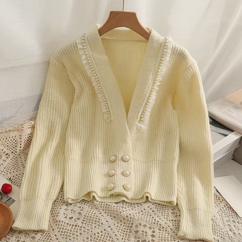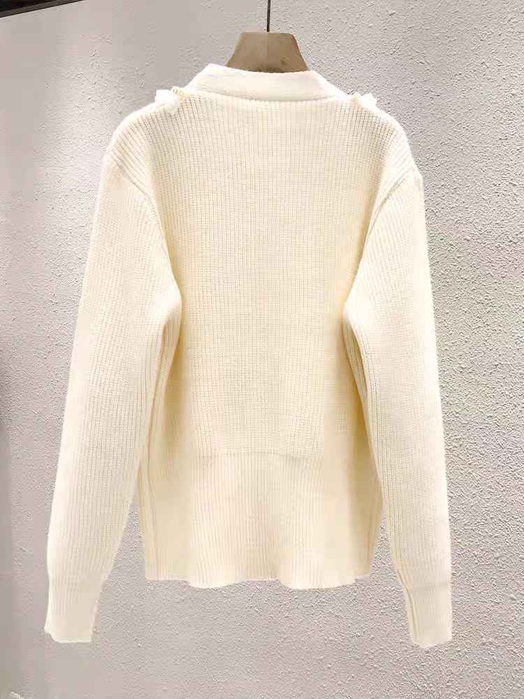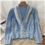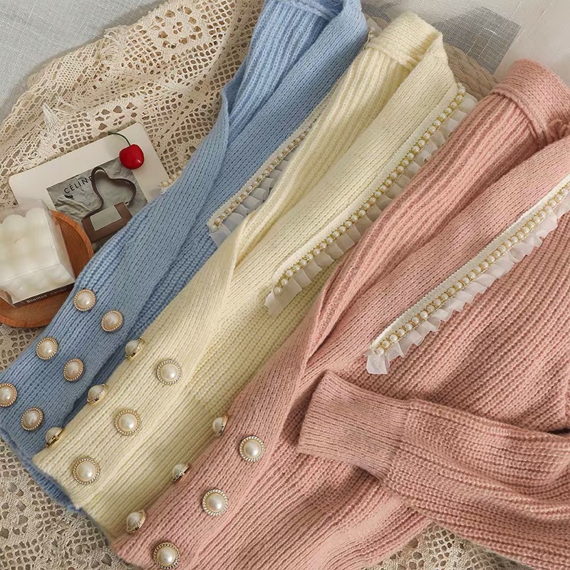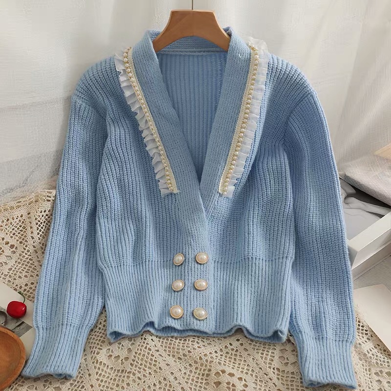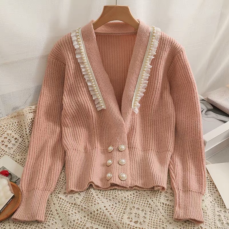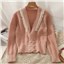 货号:网纱拼接木耳边开衫毛衣