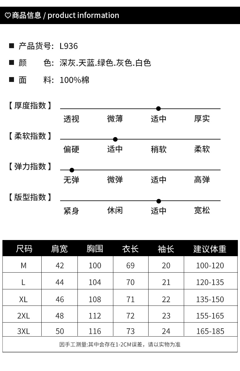 尺码 2XL(185/100A) 3XL(190/104A) L(175/92A) M(170/88A) XL(180/96A)