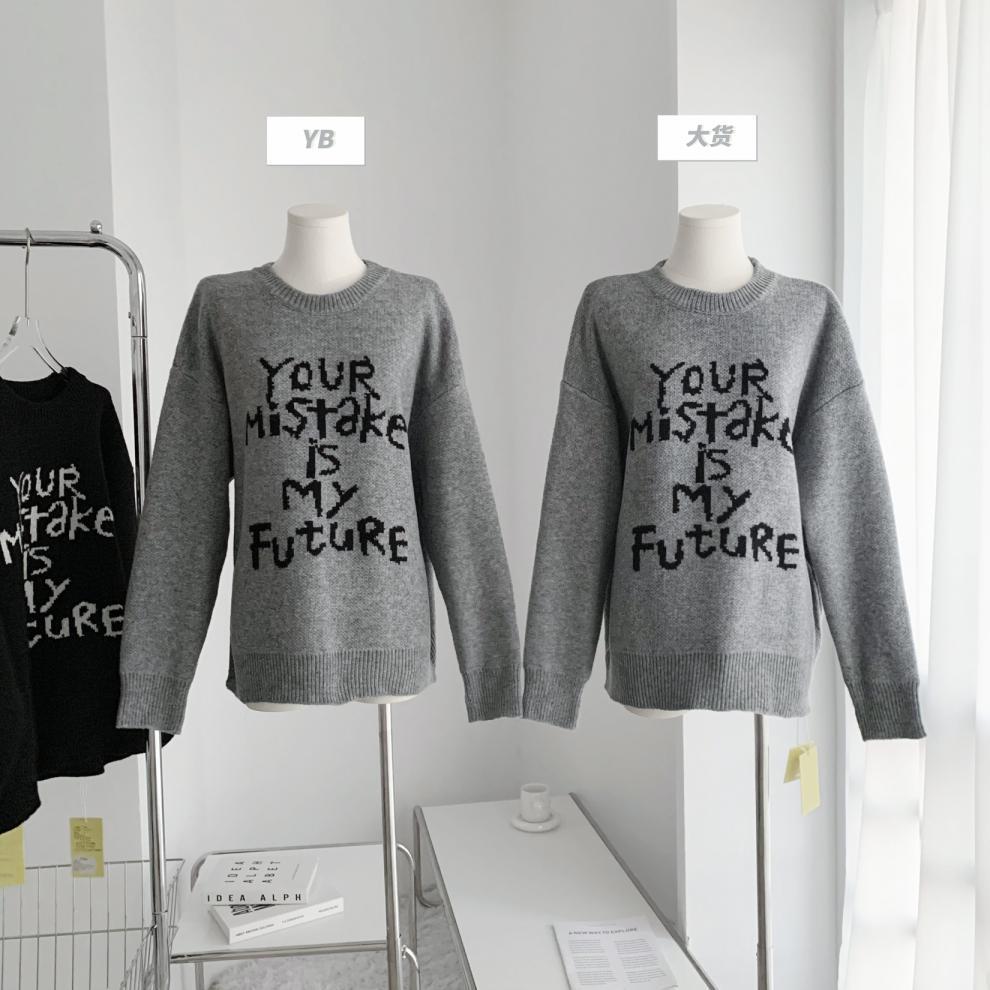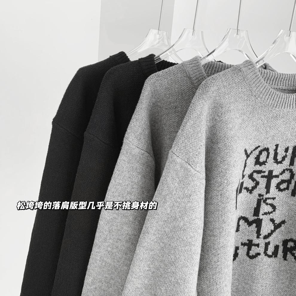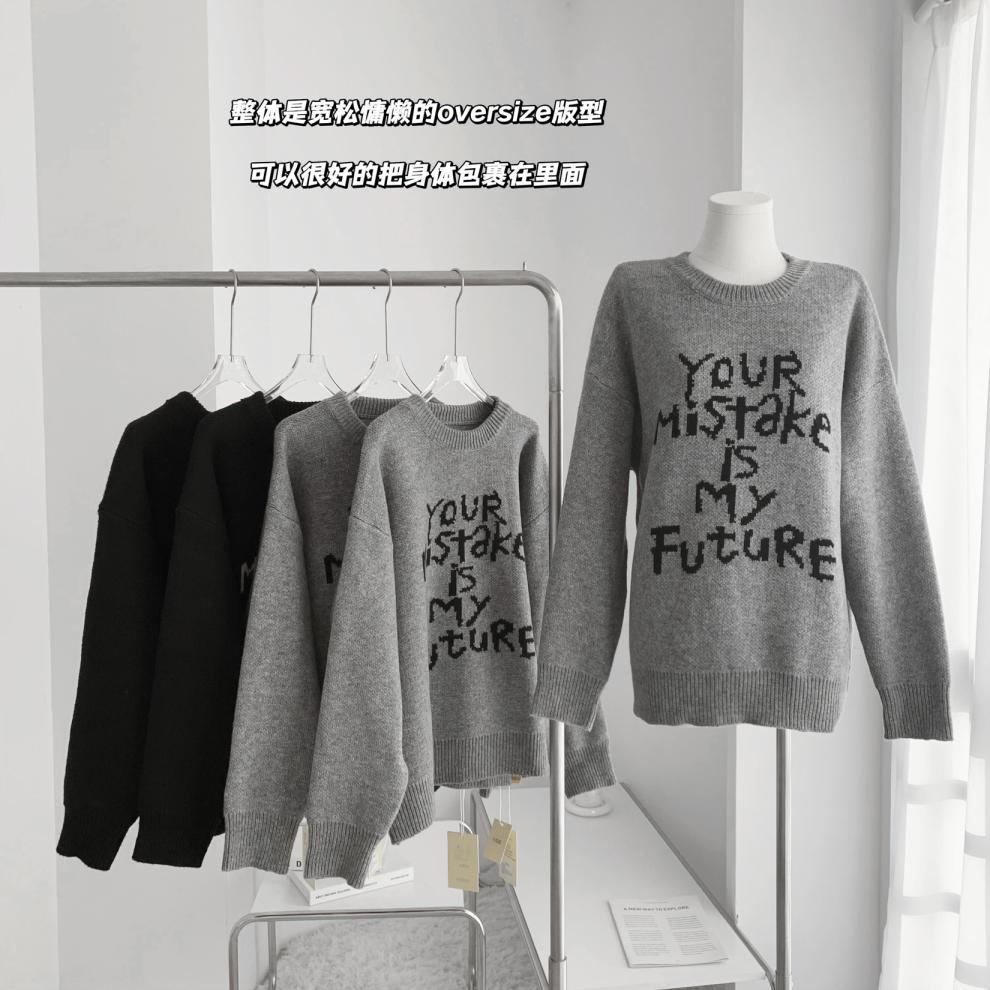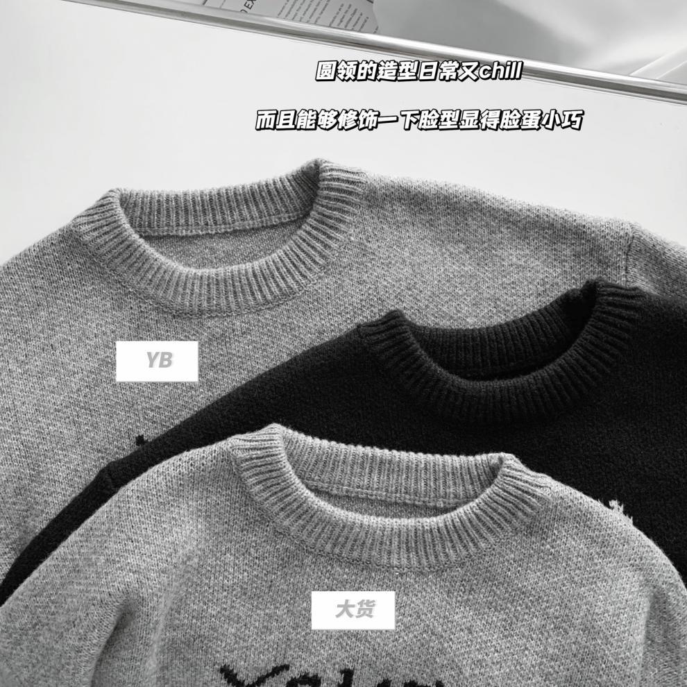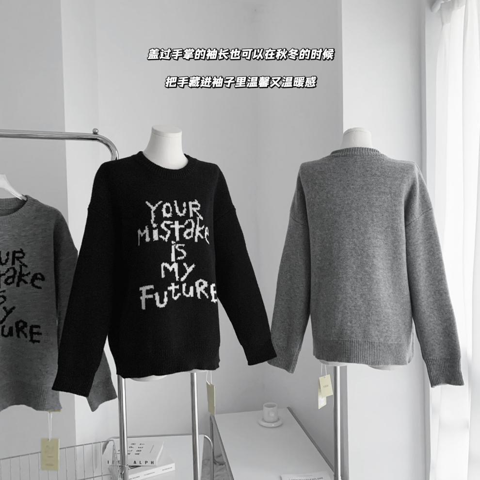 货号:日系宽松圆领毛衣女