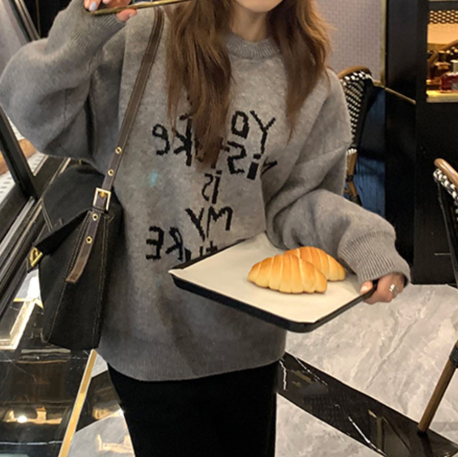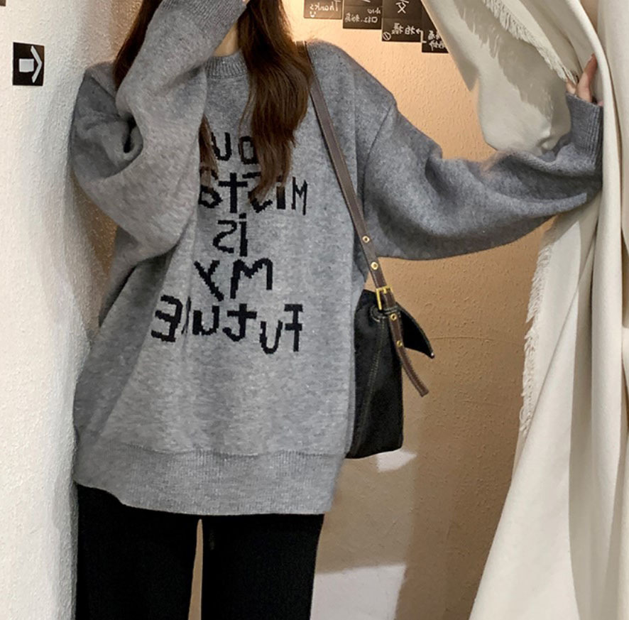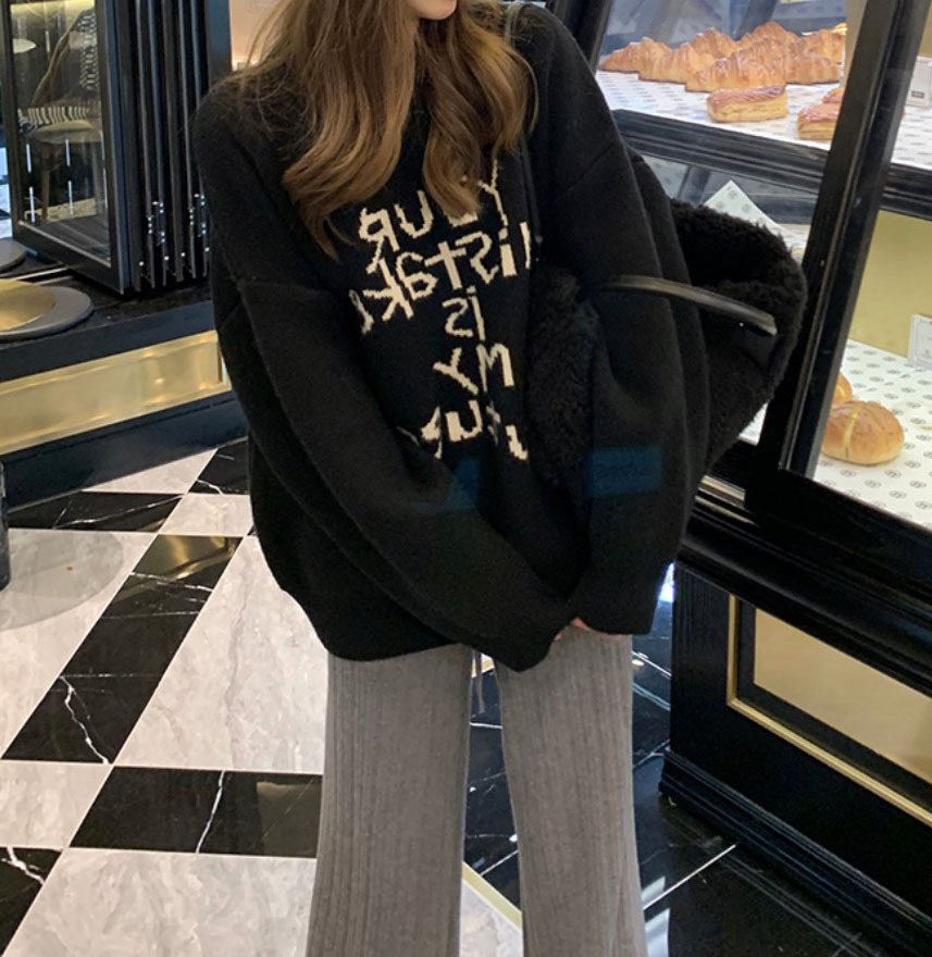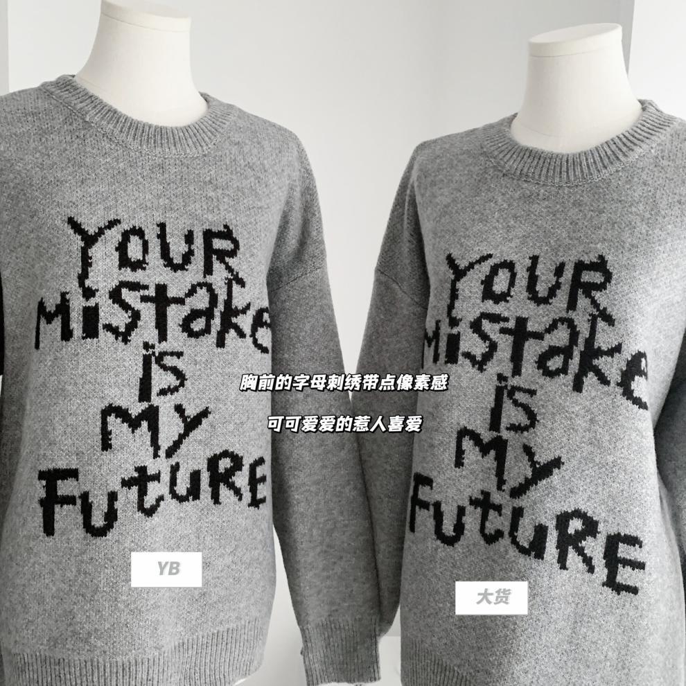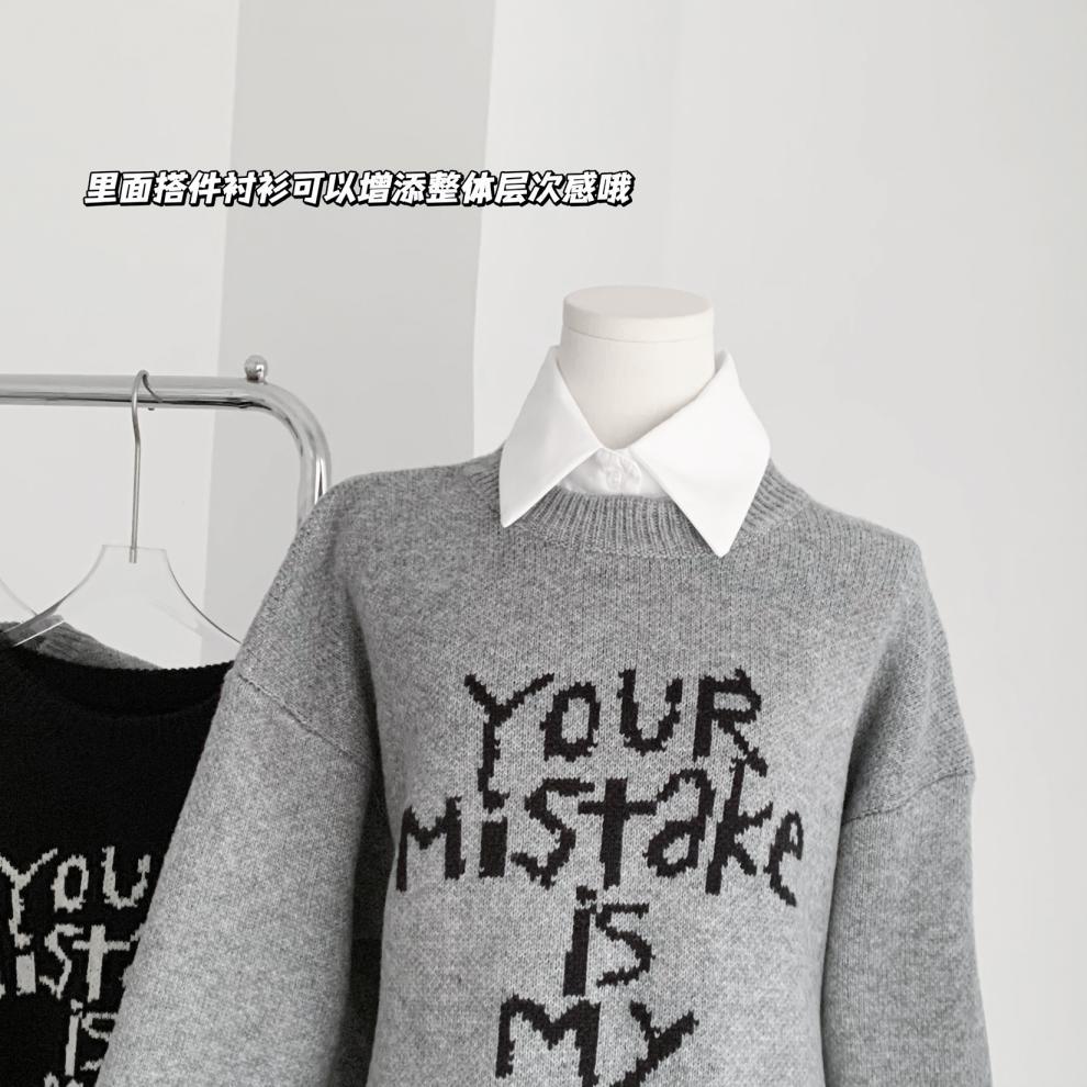 货号:日系宽松圆领毛衣女