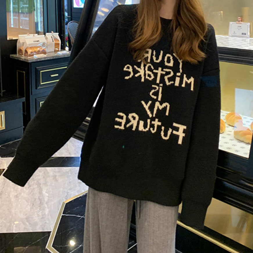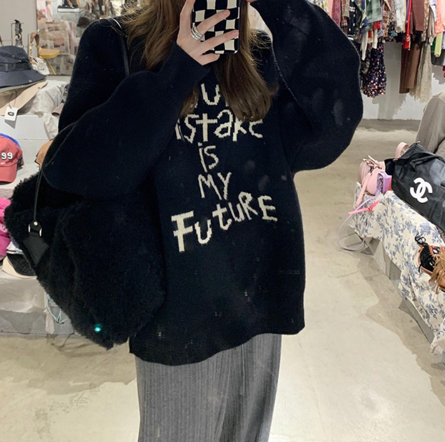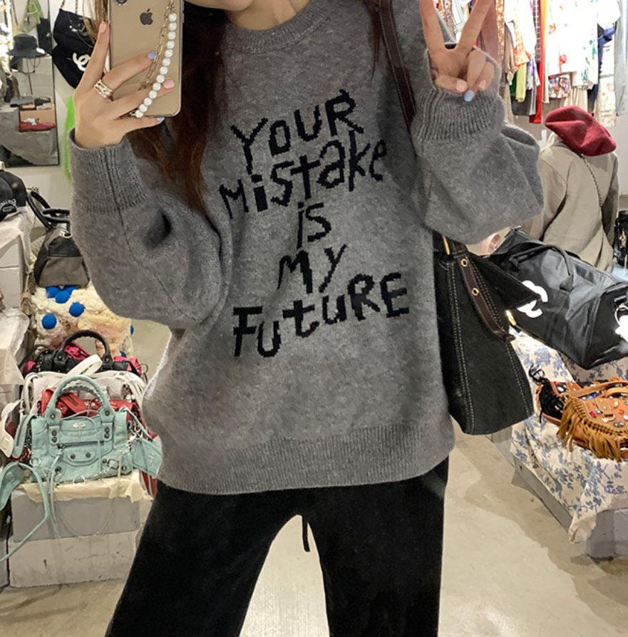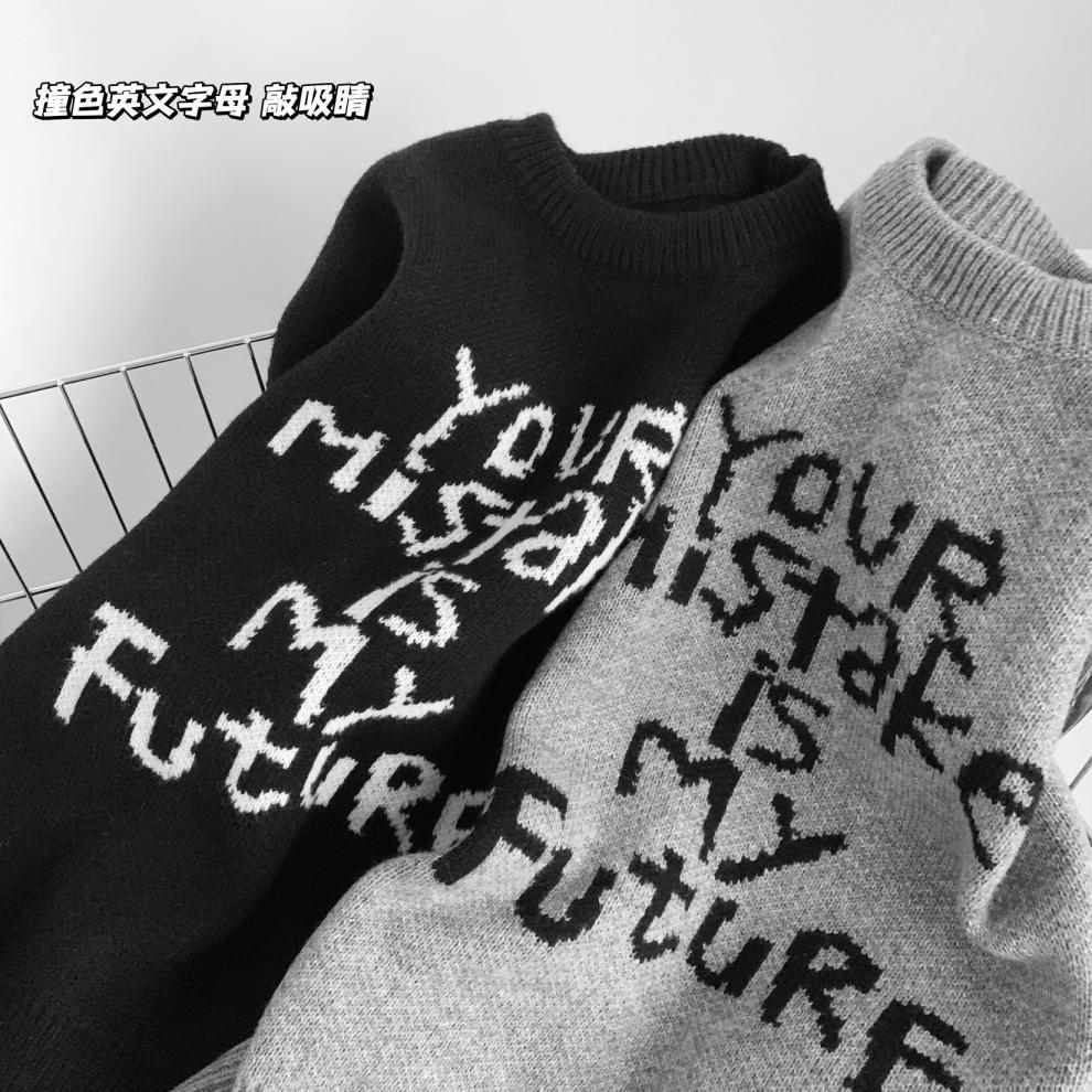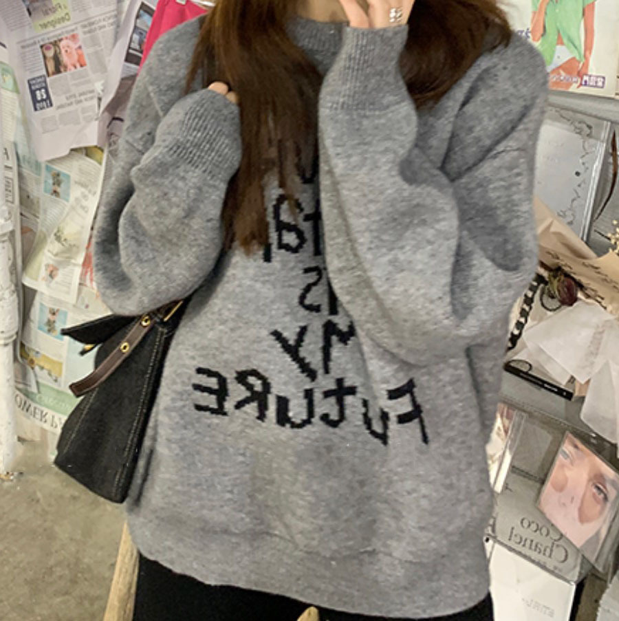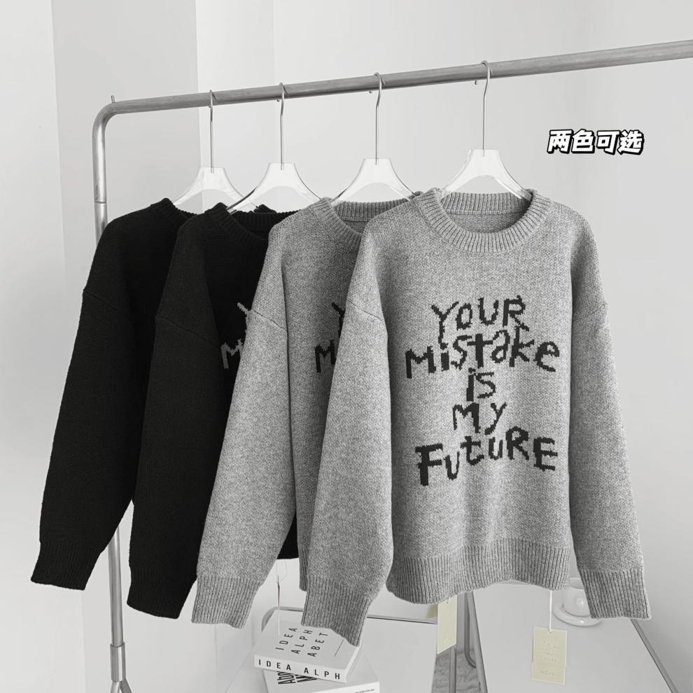 货号:日系宽松圆领毛衣女