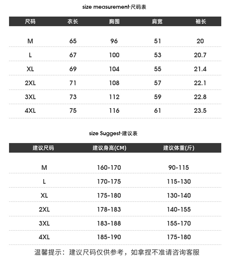 尺码 2XL 3XL 4XL L M XL