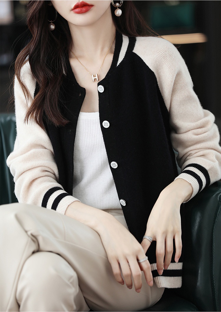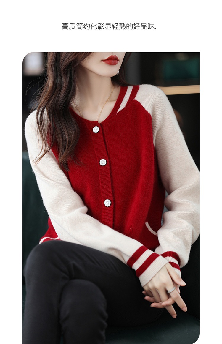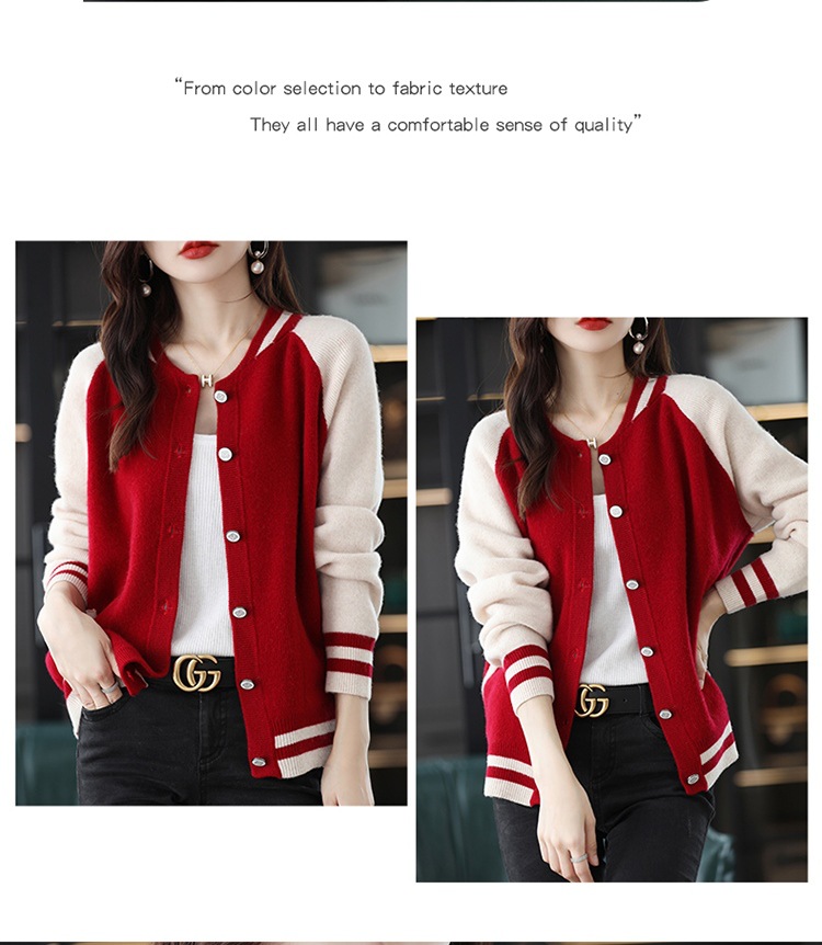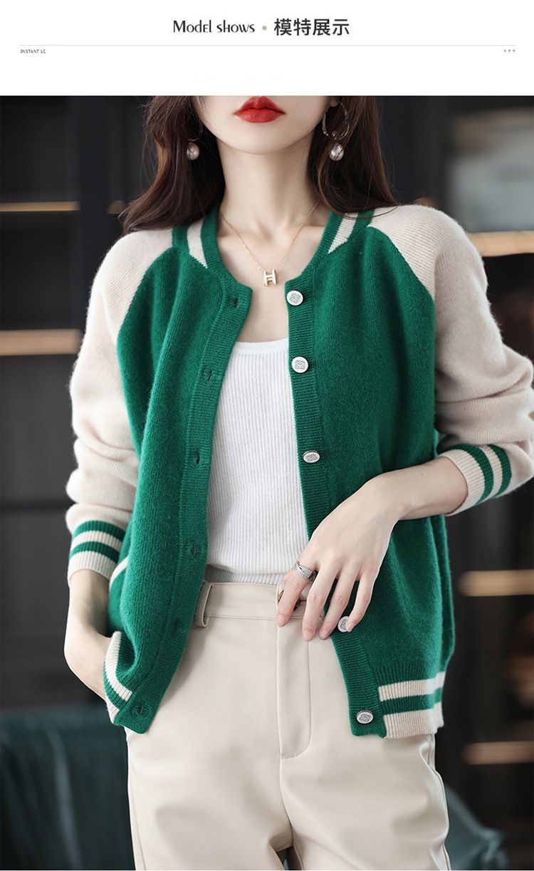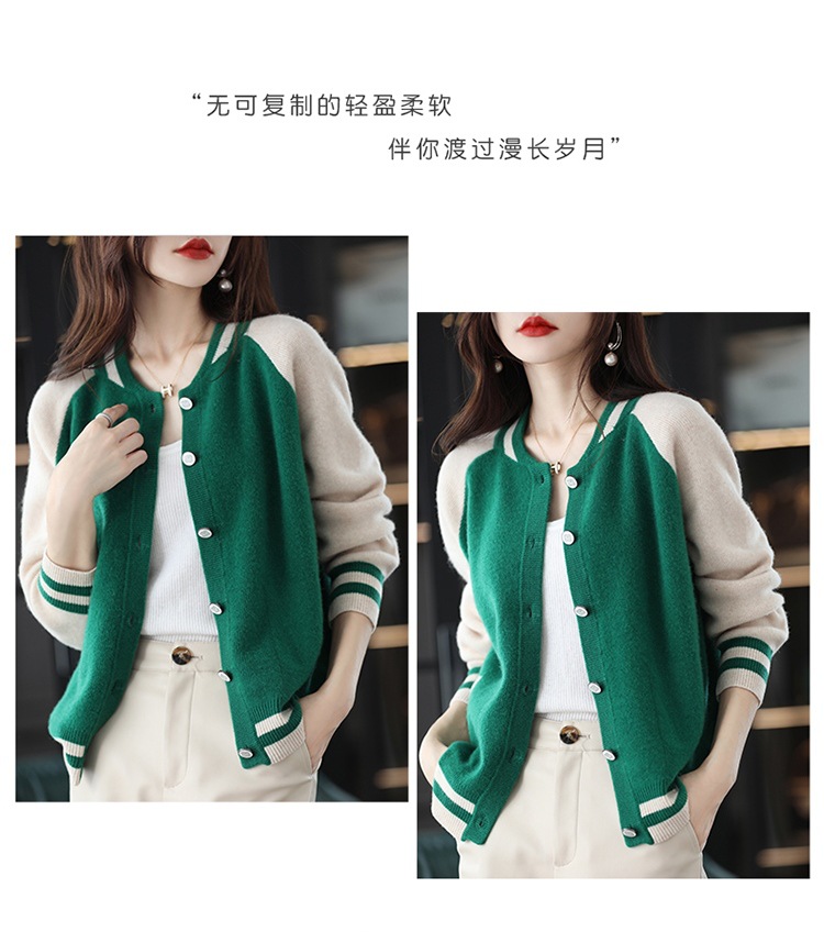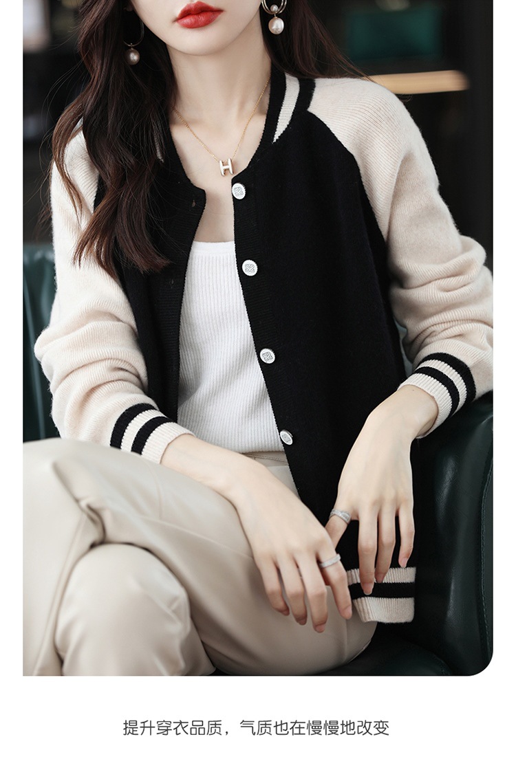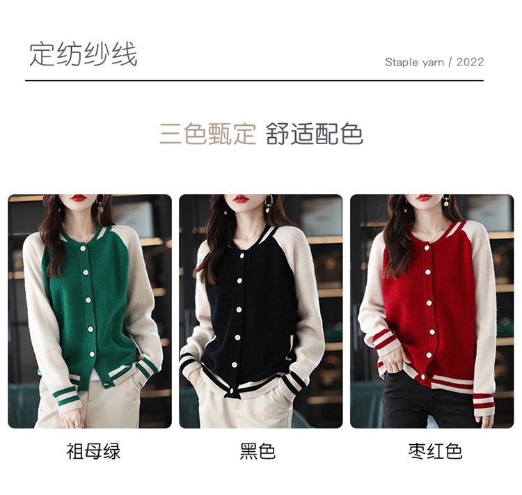 货号:拼色棒球服毛衣外套
