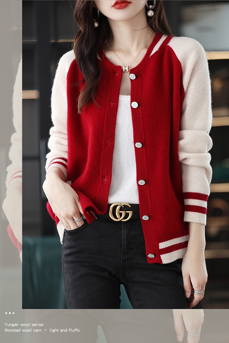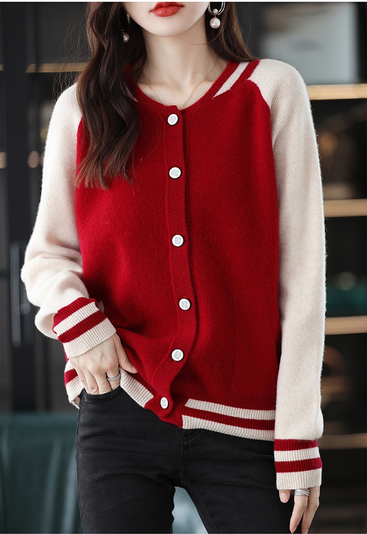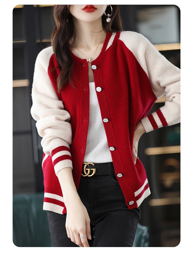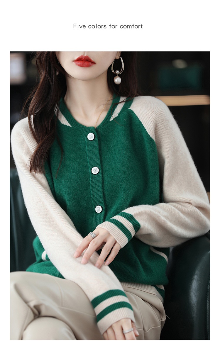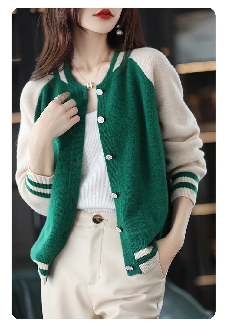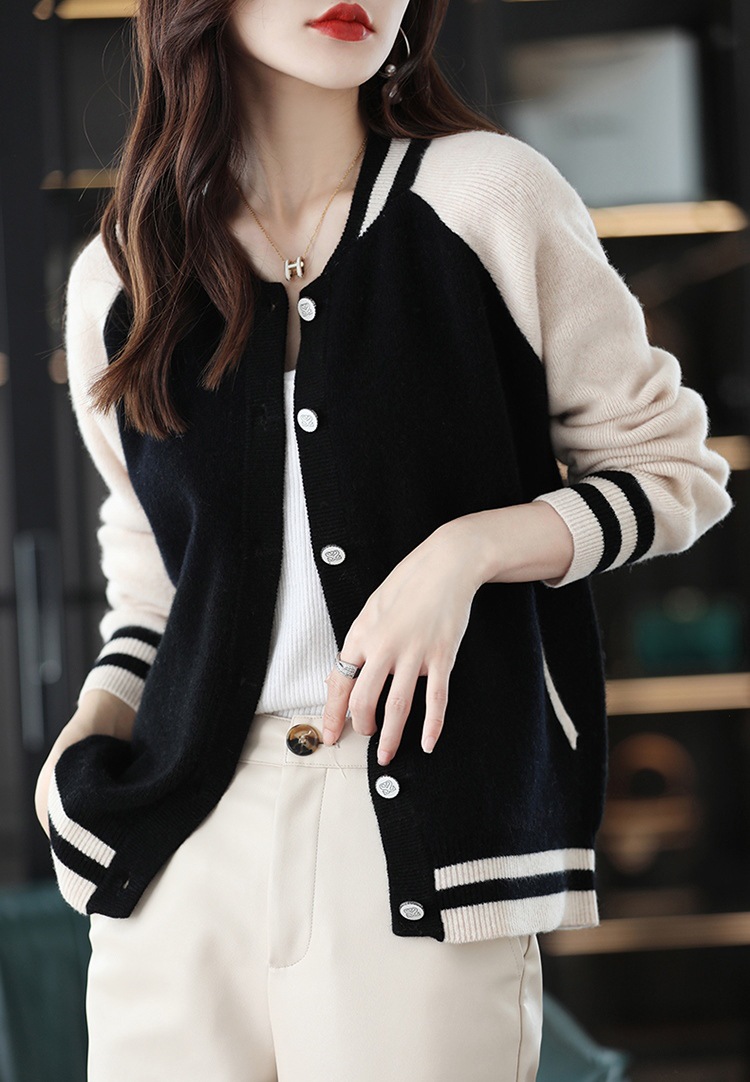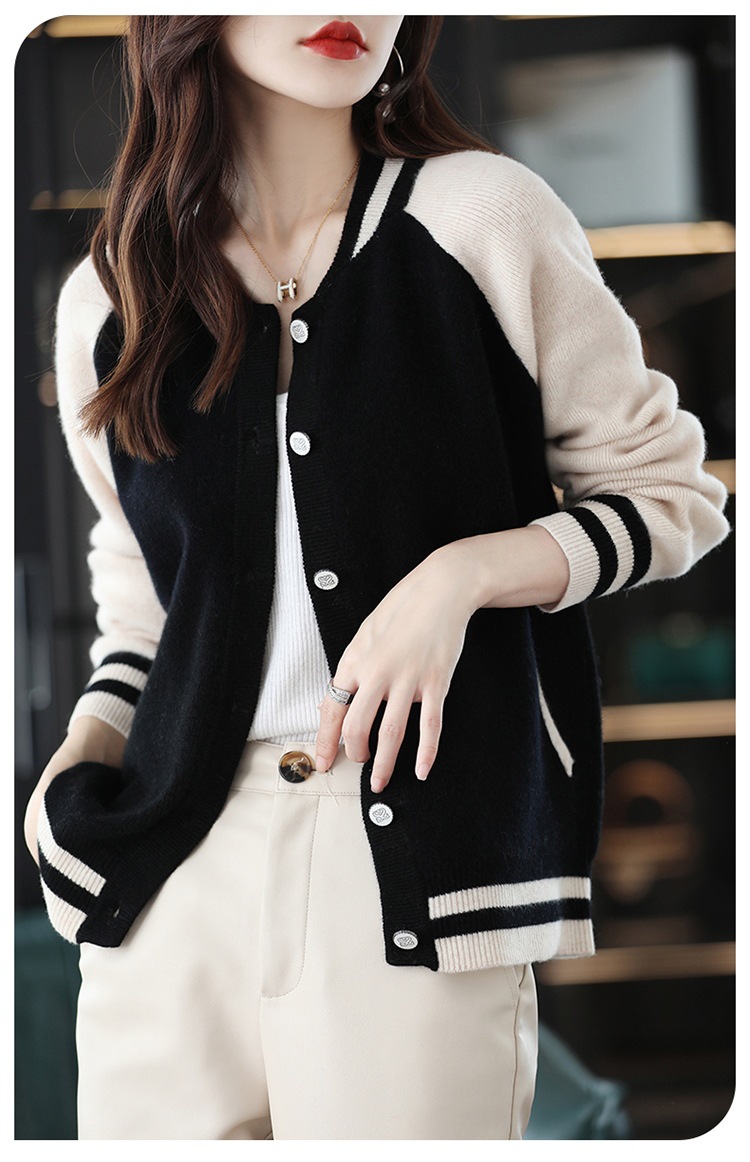 货号:拼色棒球服毛衣外套