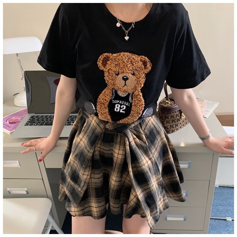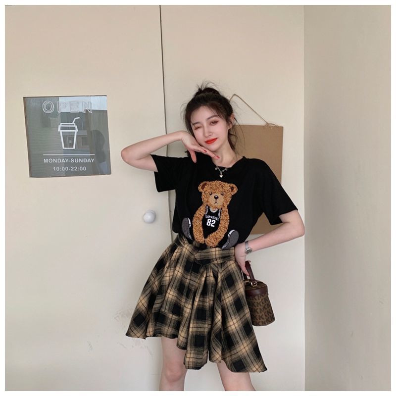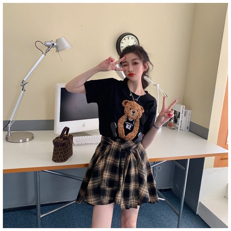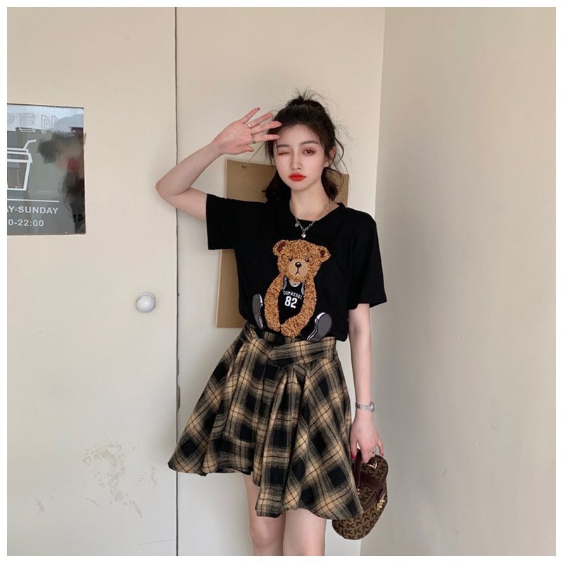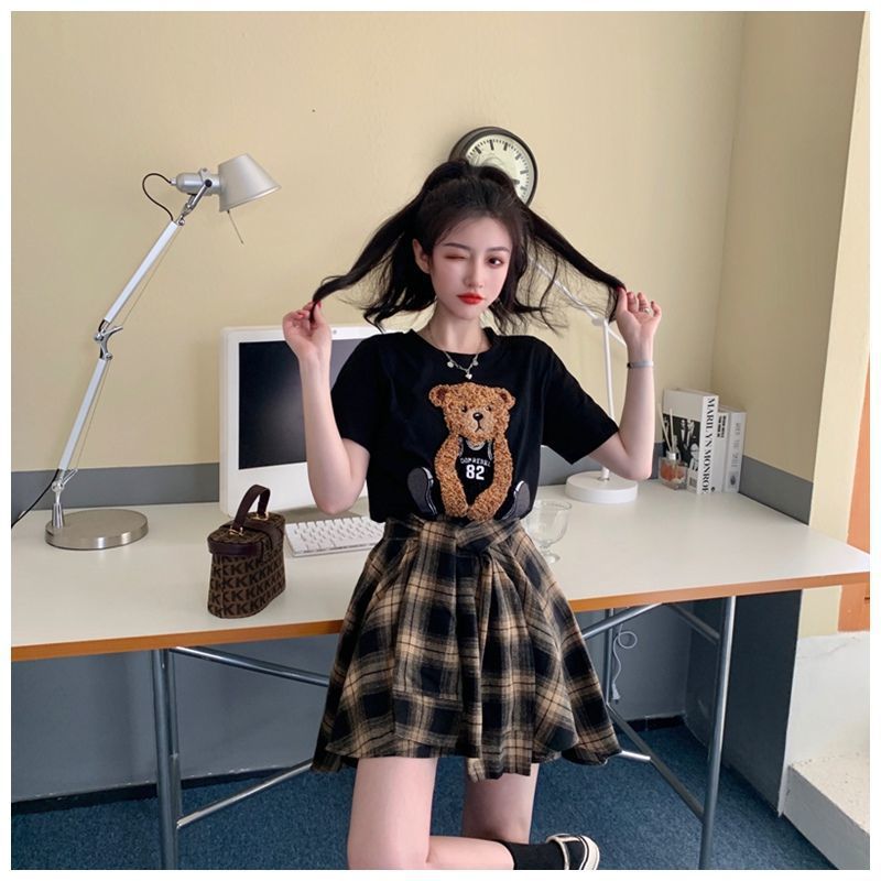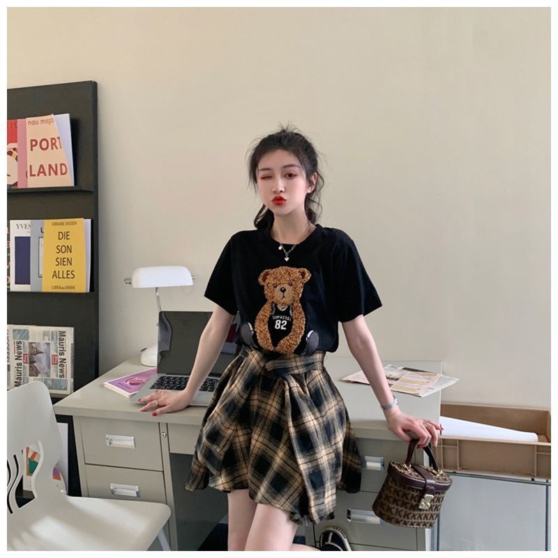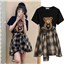 颜色 黑色上衣+格子裙 单件黑色上衣 单条格子裙