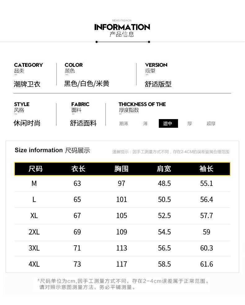尺码 2XL130至145斤 3XL145至160斤 4XL160至175斤 L105至115斤 M105斤以下 XL115至130斤