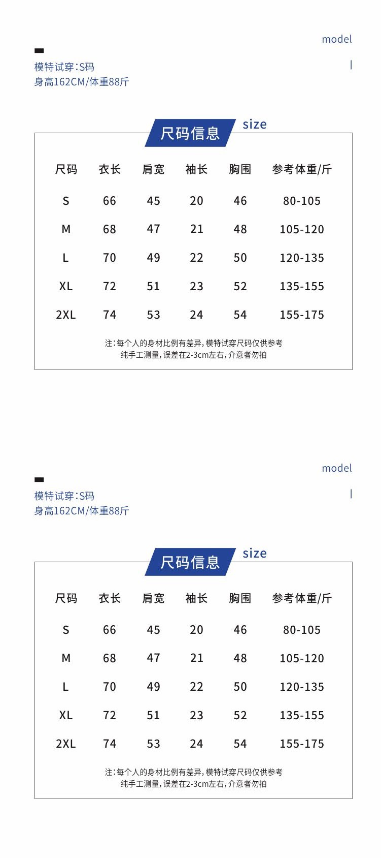 尺码 2XL L M S XL