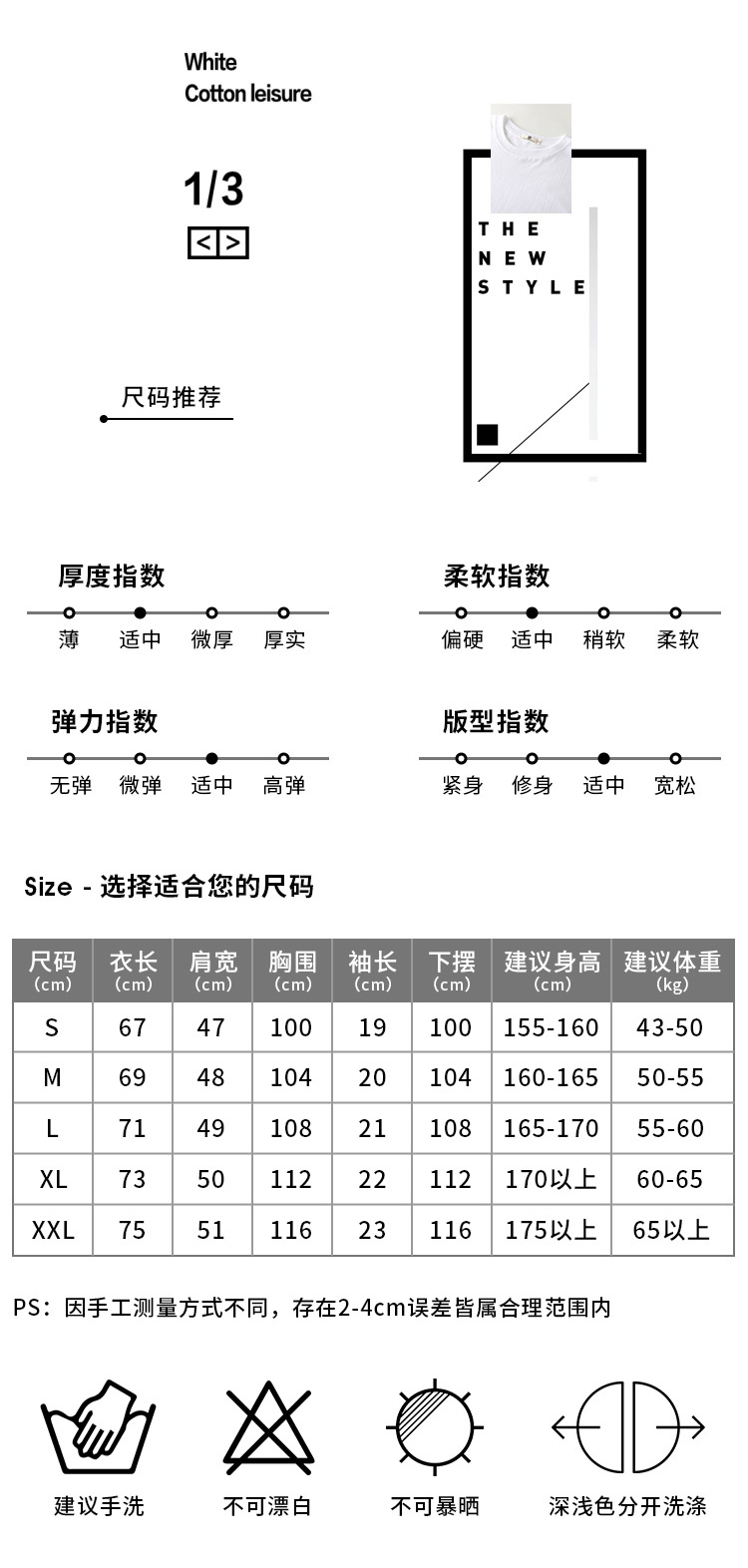 尺码 2XL L M S XL