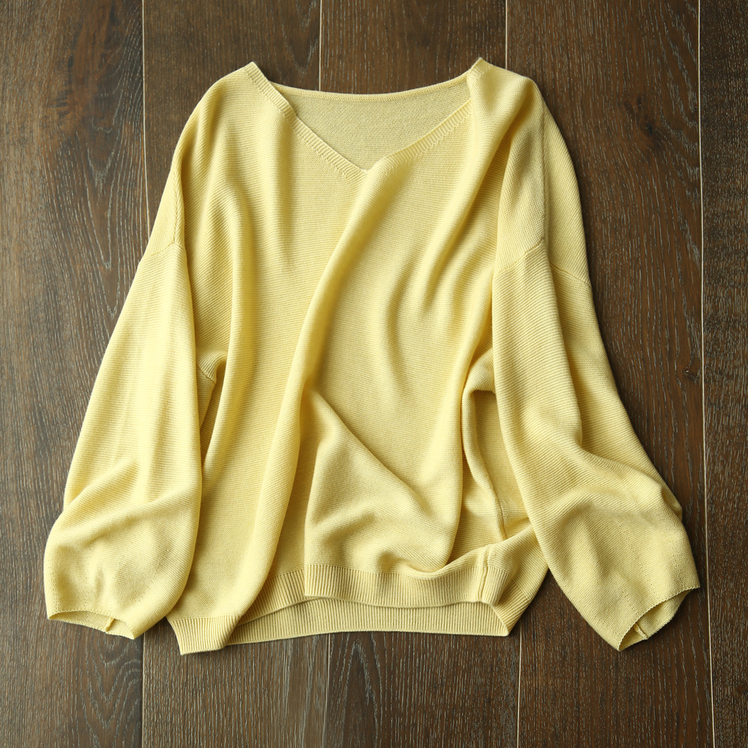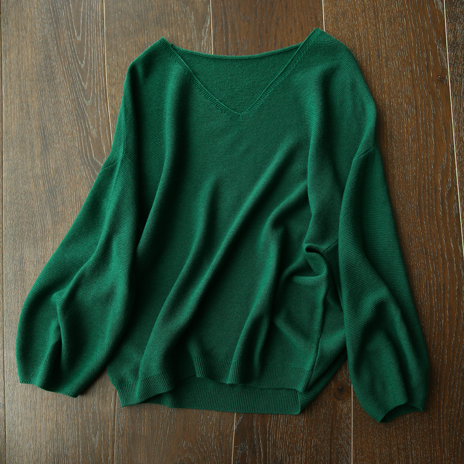 V领+落肩灯笼袖