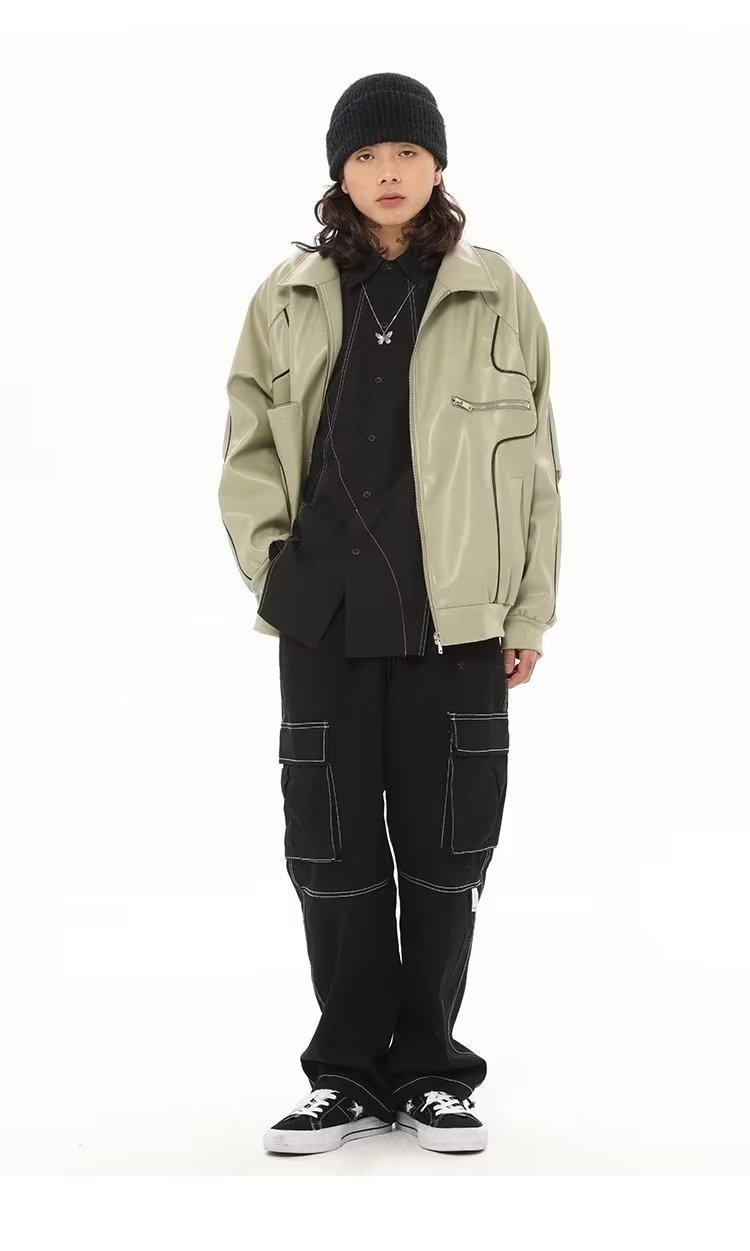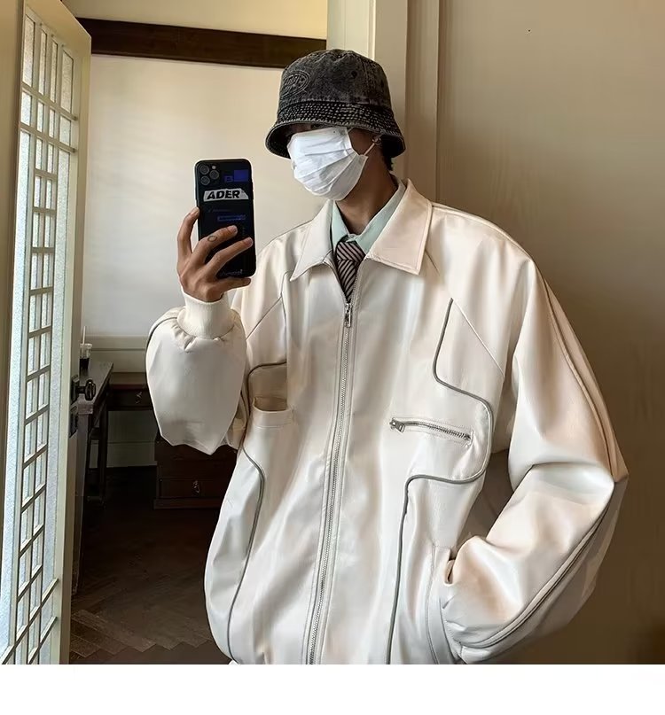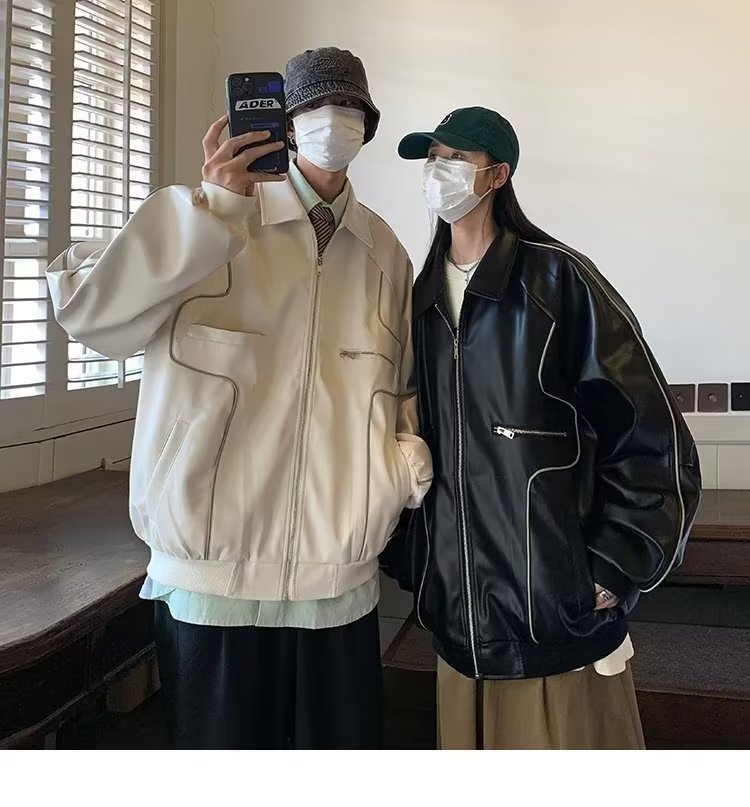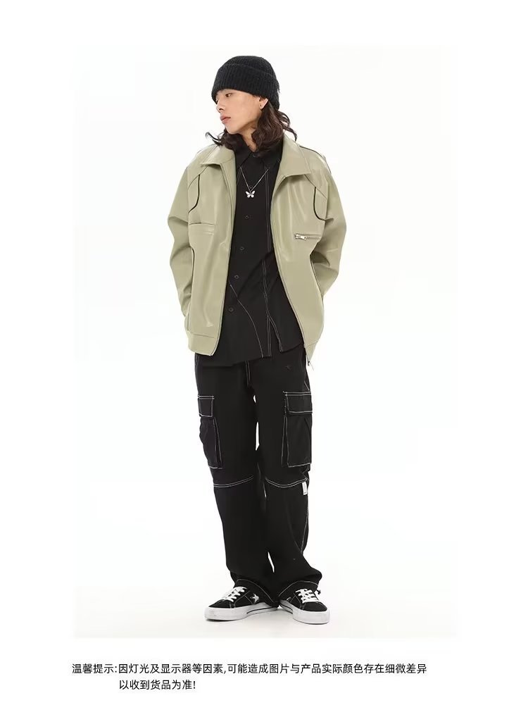 款式细节:仿皮皮衣