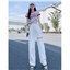 白色破洞九分裤